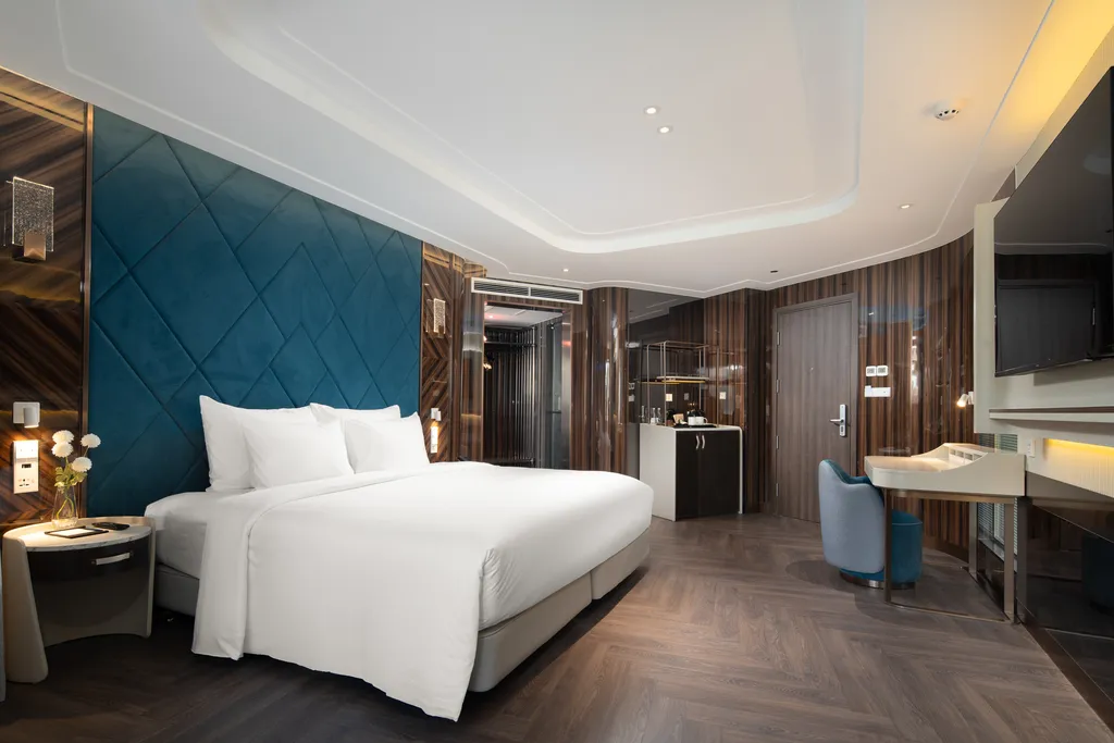 Tất cả các phòng đều có cửa kính lớn hoặc ban công riêng hướng ra biển, đảm bảo mọi khoảnh khắc trên tàu đều trọn vẹn với khung cảnh tuyệt đẹp của vịnh.