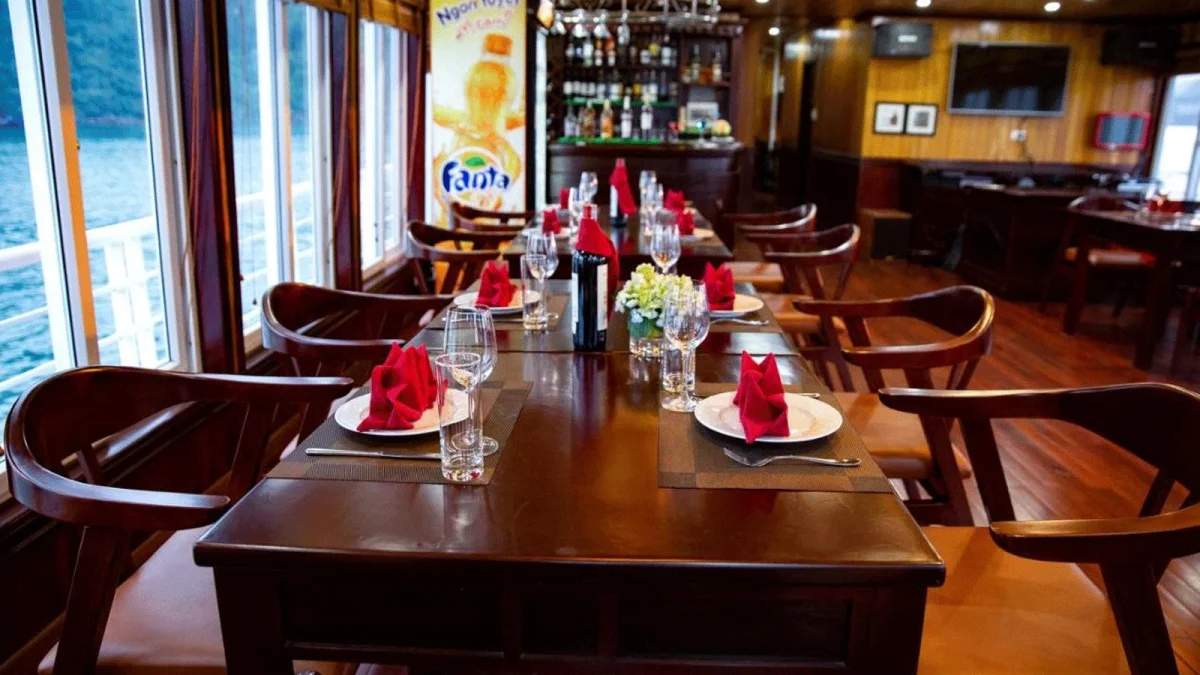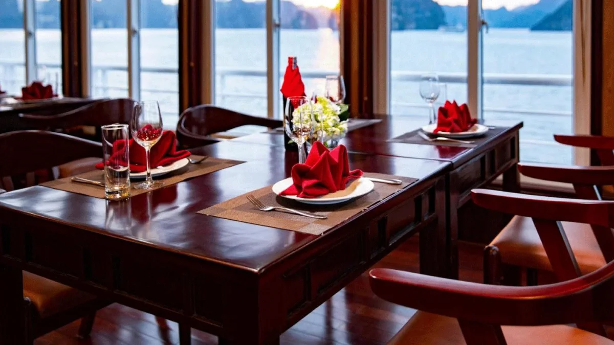 Thực đơn trên Lavender Elegance kết hợp hài hòa giữa ẩm thực truyền thống Việt Nam và các món Âu hiện đại. Các bữa ăn được chế biến từ hải sản tươi sống và nguyên liệu địa phương, mang đến trải nghiệm ẩm thực đích thực của vùng Quảng Ninh.
