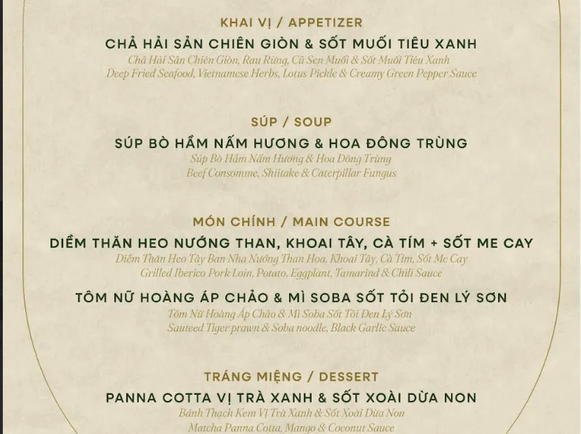 - Ăn Trưa (11:00 - 13:30): Thưởng thức Set Menu trong không gian sang trọng (Tàu không di chuyển).