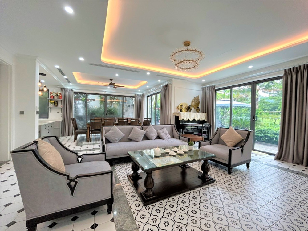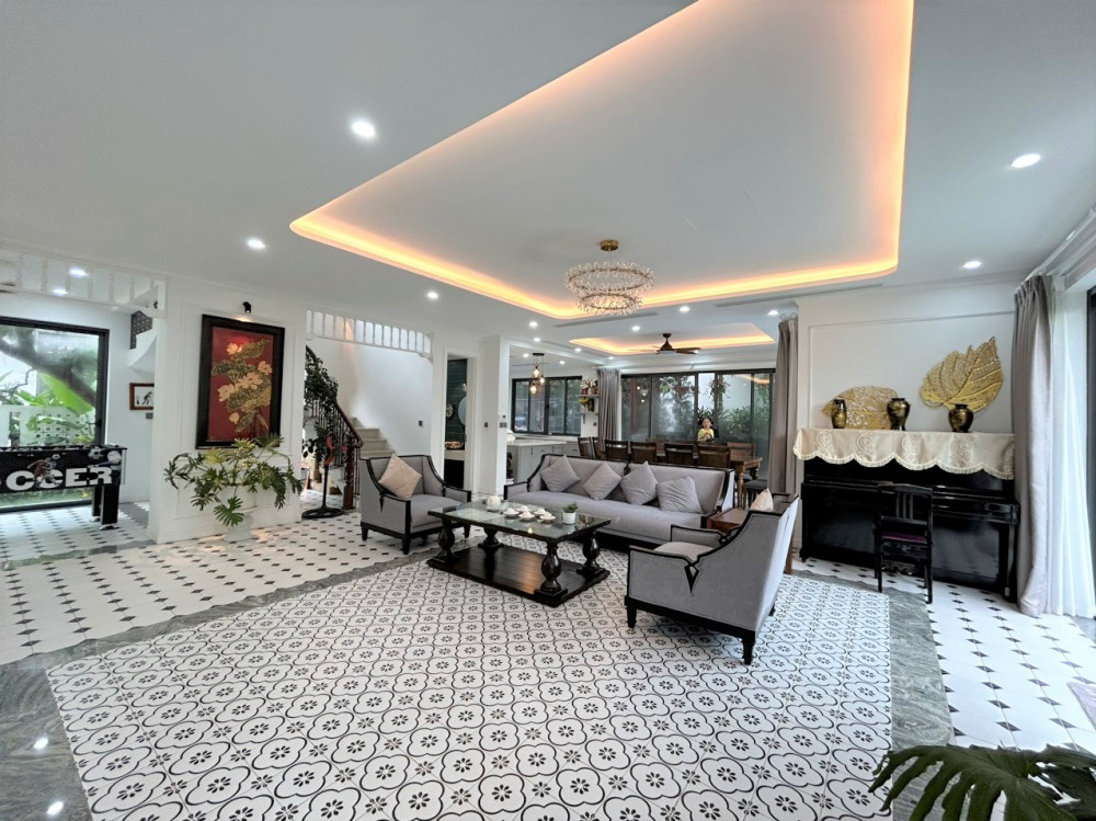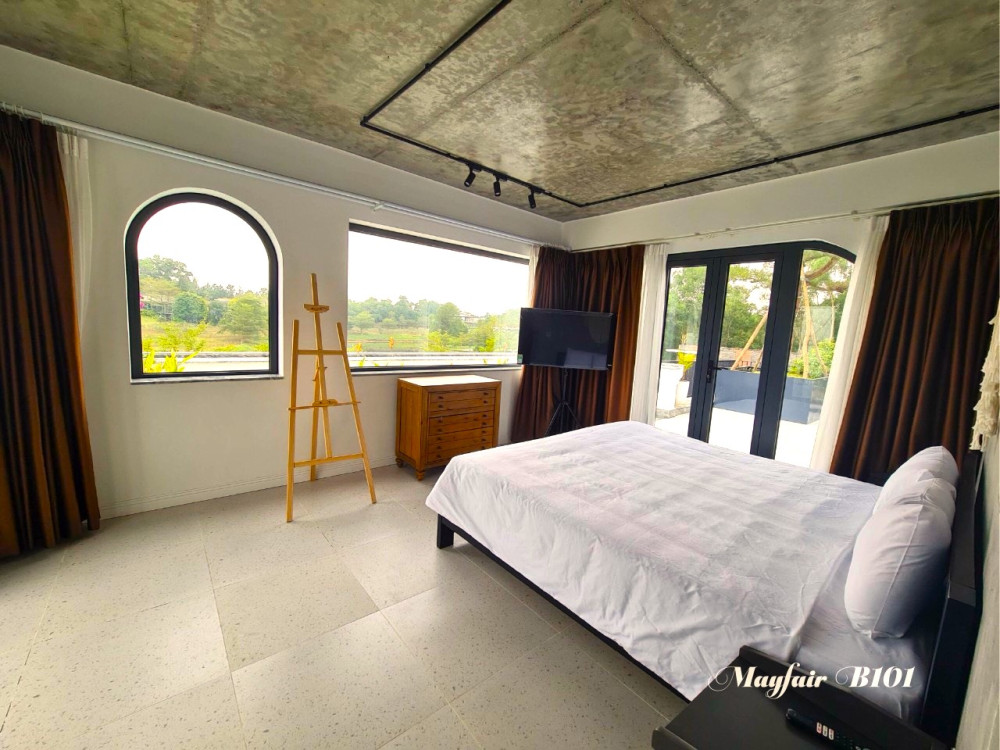Villa B101 được thiết kế với nhiều phòng rộng, khu sinh hoạt chung lớn, hồ bơi riêng trong khuôn viên và sân vườn thoáng. Phòng khách và bếp được bố trí thuận tiện để cả đoàn có thể quây quần, trò chuyện, nấu ăn và thư giãn cùng nhau. Các phòng ngủ được thiết kế khép kín với tiện nghi hiện đại, đảm bảo không gian riêng tư nhưng vẫn nằm trong cùng biệt thự.