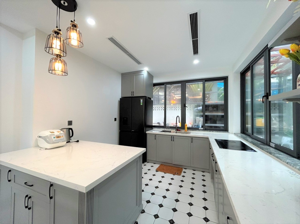 • Bếp nấu đầy đủ dụng cụ: chén đĩa, nồi, tủ lạnh, lò vi sóng – thuận tiện để tổ chức tiệc nhỏ hoặc làm bữa ăn chịu rồi