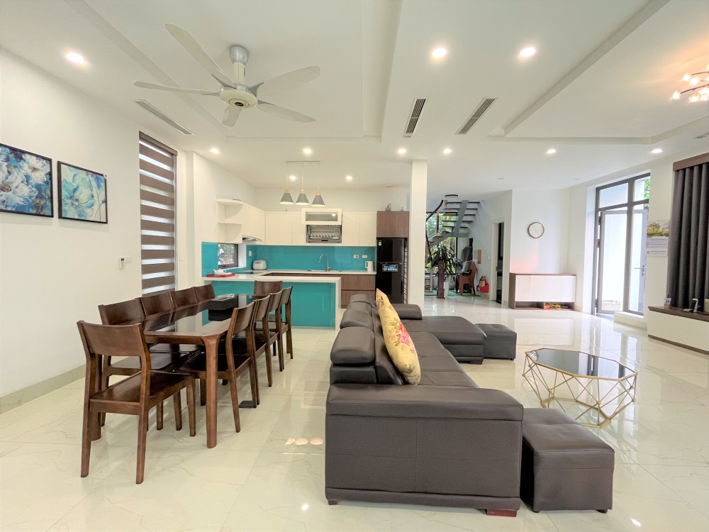 - Kiến trúc & tiện nghi: villa 2 tầng, gồm phòng khách rộng, nhà bếp, khu ăn uống, nội thất cao cấp, trang bị thiết bị điện tử như TV, wifi, điều hòa