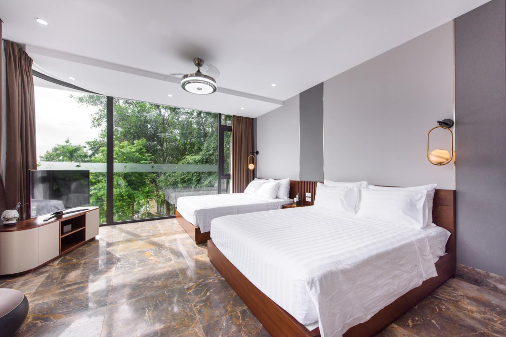 Với vị trí này, du khách có thể vừa nghỉ dưỡng yên tĩnh vừa thuận tiện tiếp cận các điểm tham quan, dịch vụ trong resort.