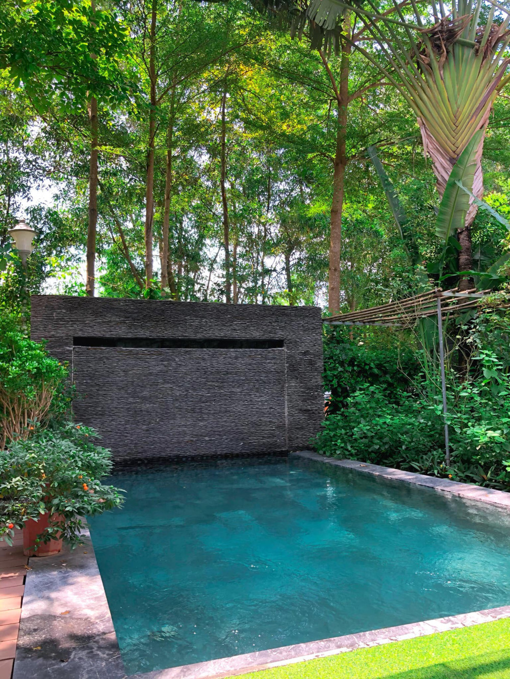 Tại khu sân trước, bạn có thể tổ chức BBQ, tiệc nhỏ hoặc chụp ảnh sống ảo với hồ bơi riêng và không gian cây xanh thoáng mát.