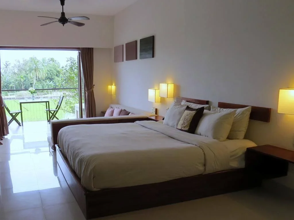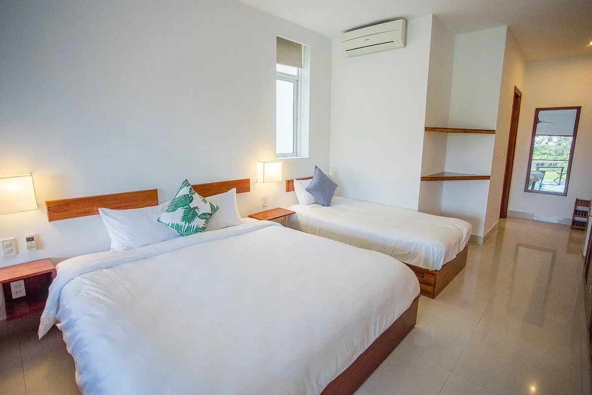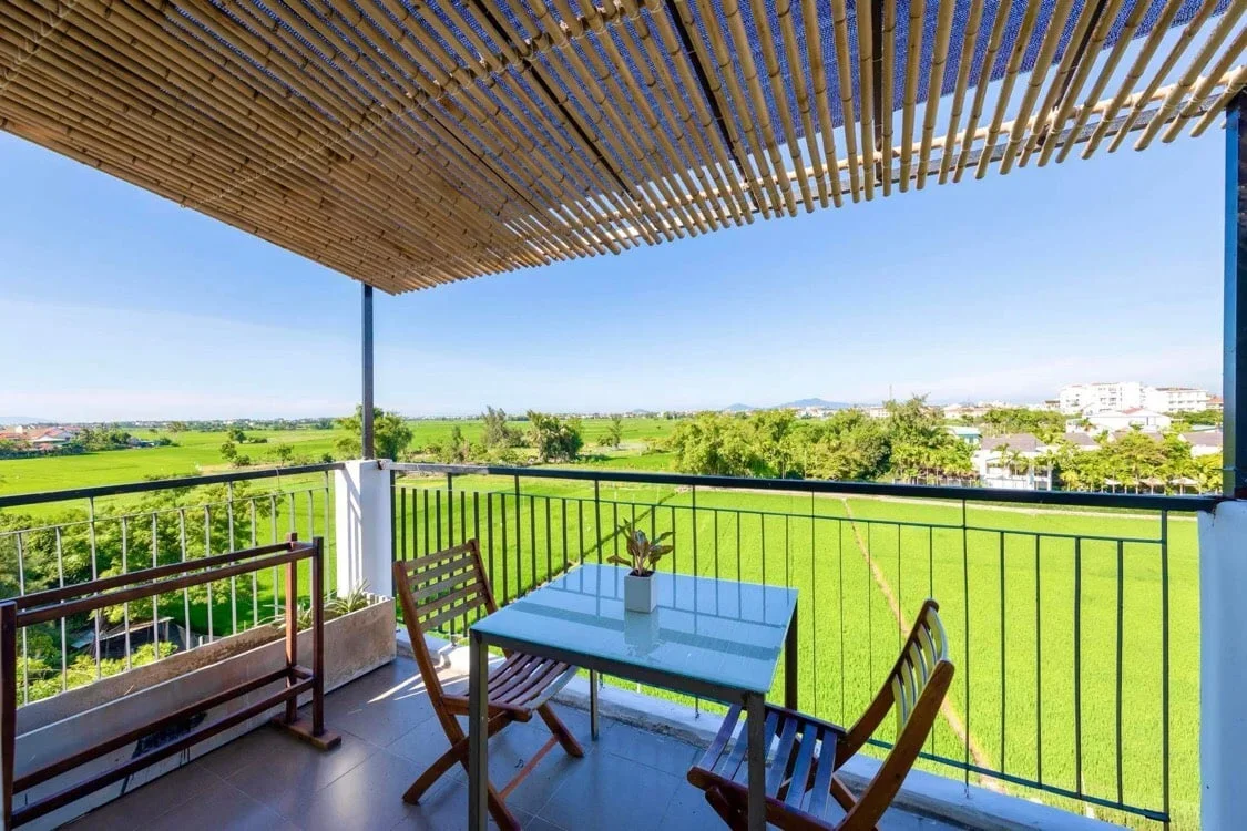 Mỗi phòng ngủ đều có ban công riêng, tầm nhìn ra đồng lúa, cùng ánh sáng tự nhiên tràn ngập.