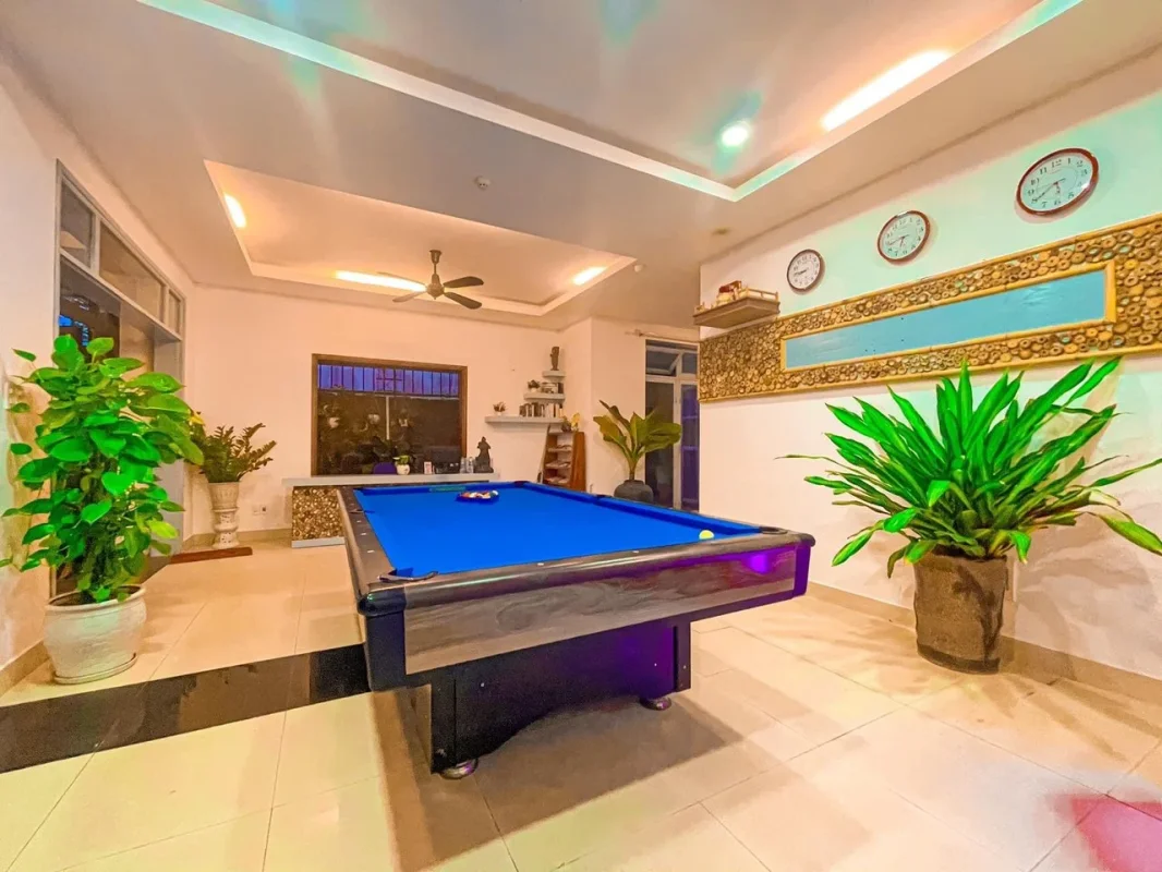 Với 9 phòng ngủ khép kín, hồ bơi riêng, bàn bida giải trí và không gian mở hướng ra ruộng lúa, nơi đây mang đến cảm giác yên bình nhưng vẫn đầy tiện nghi cho những buổi nghỉ dưỡng trọn vẹn.