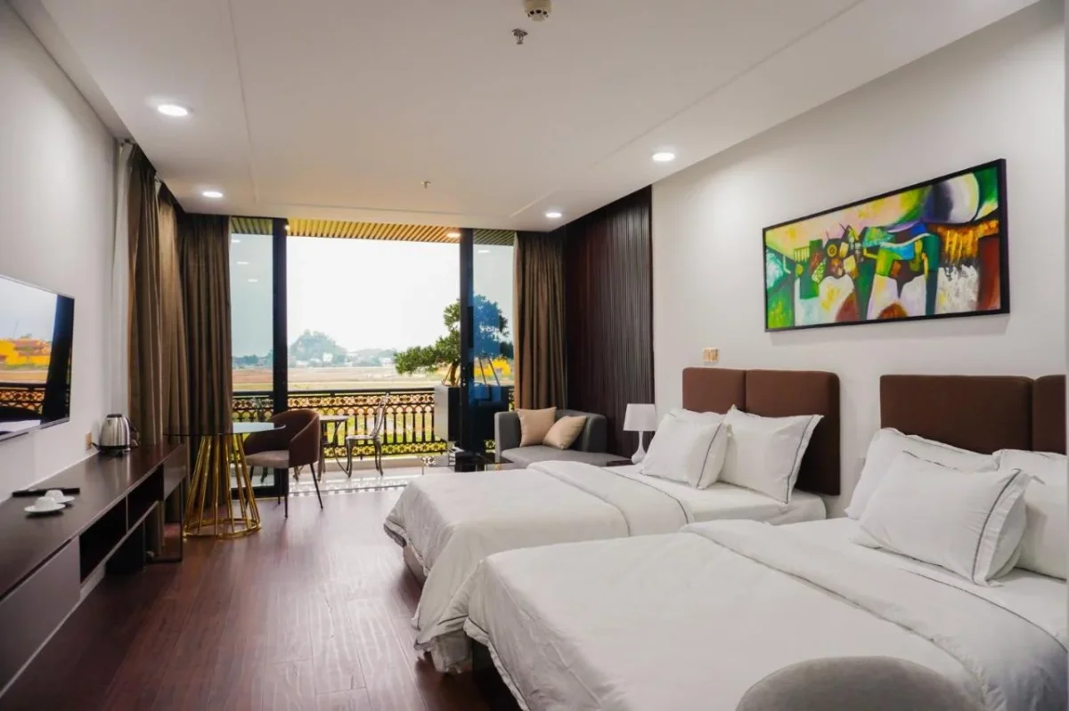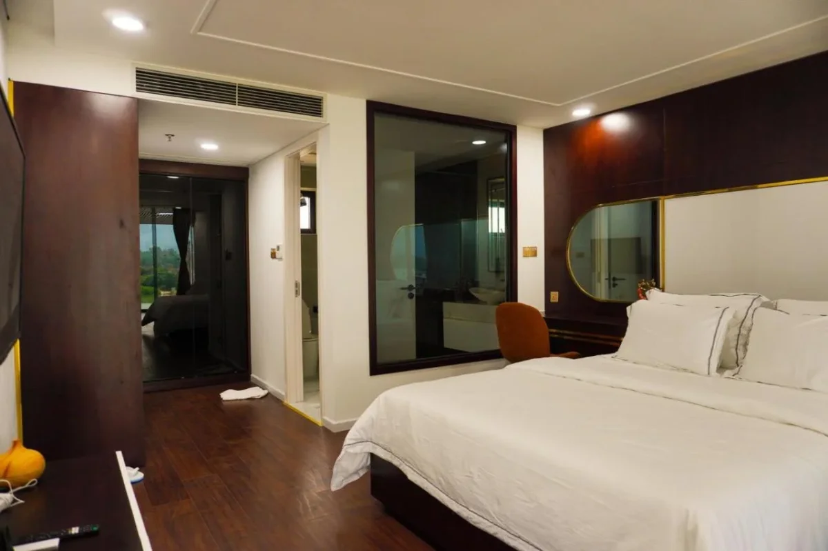 Các phòng được trang bị đầy đủ tiện nghi cơ bản: điều hòa không khí, rèm che sáng tốt, khu vực sinh hoạt chung. Thiết kế hướng đến sự tiện dụng hơn là xa hoa, phù hợp với những ai coi trọng không gian sống thoải mái trong kỳ nghỉ.