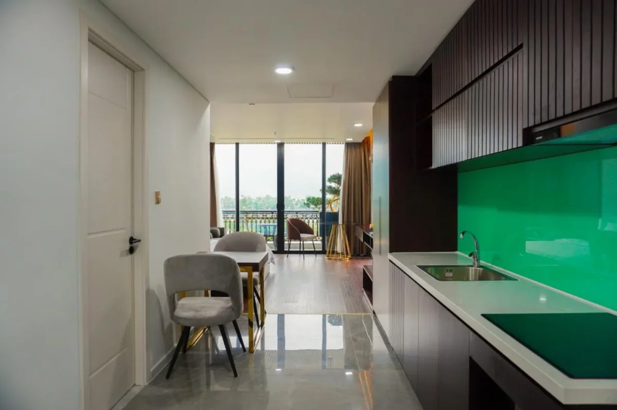 Khác với các resort truyền thống, Cami Riverside được thiết kế theo mô hình aparthotel – nơi mỗi phòng nghỉ có không gian rộng rãi như một căn hộ nhỏ, với phòng khách riêng và đôi khi có cả bếp nhỏ. Đây là lựa chọn phù hợp với những ai muốn có không gian thoải mái hơn, đặc biệt là gia đình có trẻ nhỏ hoặc những người có nhu cầu lưu trú dài ngày.