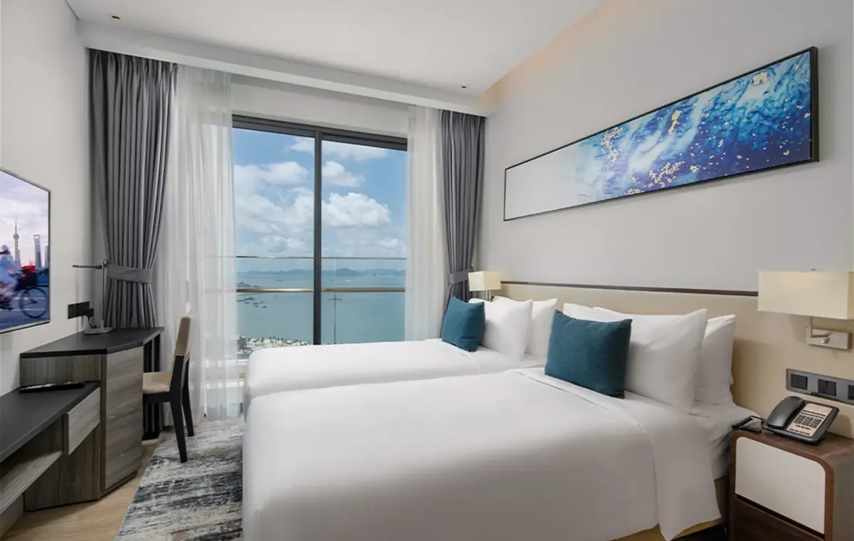 Tầm nhìn trực diện biển: Nhờ thiết kế tòa tháp đôi cao 30 tầng sát mép vịnh, hầu hết các phòng tại Citadines đều có ban công hướng biển, giúp du khách ngắm nhìn trọn vẹn vẻ đẹp của vịnh Hạ Long ngay tại giường ngủ.