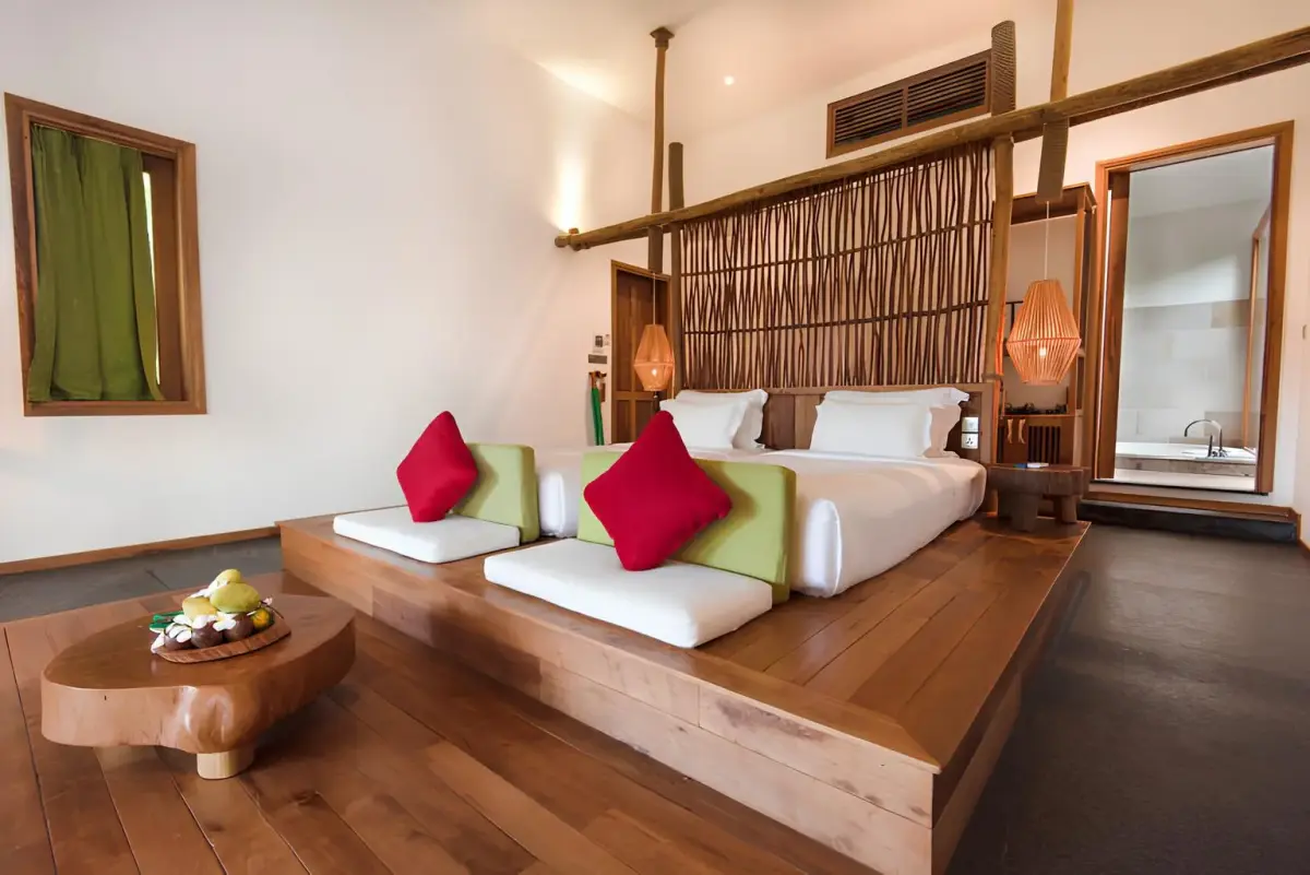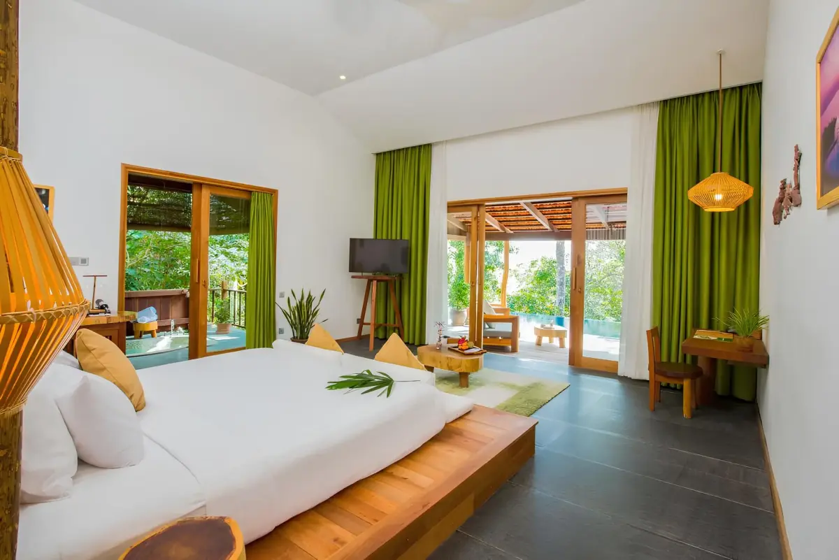 mỗi biệt thự đều có máy lạnh, tv màn hình phẳng, minibar, két sắt và phòng tắm riêng. một số căn nhìn thẳng ra biển, một số lại ẩn trong vườn xanh mát – tùy bạn thích kiểu nào.