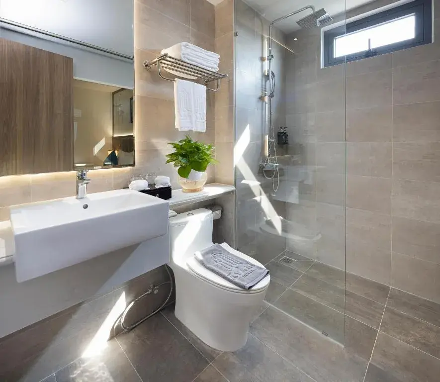 Tiện nghi đầy đủ: Khách sạn trang bị đầy đủ các thiết bị theo tiêu chuẩn 4 sao bao gồm điều hòa nhiệt độ, tivi màn hình phẳng, tủ lạnh nhỏ, ấm đun nước và két sắt an toàn. Phòng tắm được thiết kế hiện đại với hệ thống nước nóng ổn định và đầy đủ đồ dùng cá nhân.
