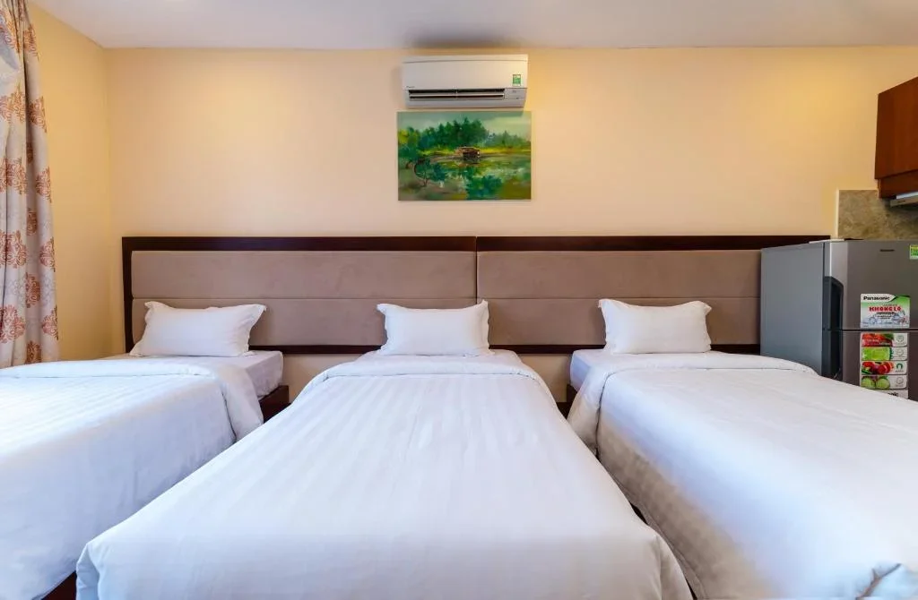 Khách sạn có nhiều loại phòng đa dạng, từ phòng tiêu chuẩn, phòng deluxe view thành phố cho đến căn hộ 1–2 phòng ngủ có bếp riêng.