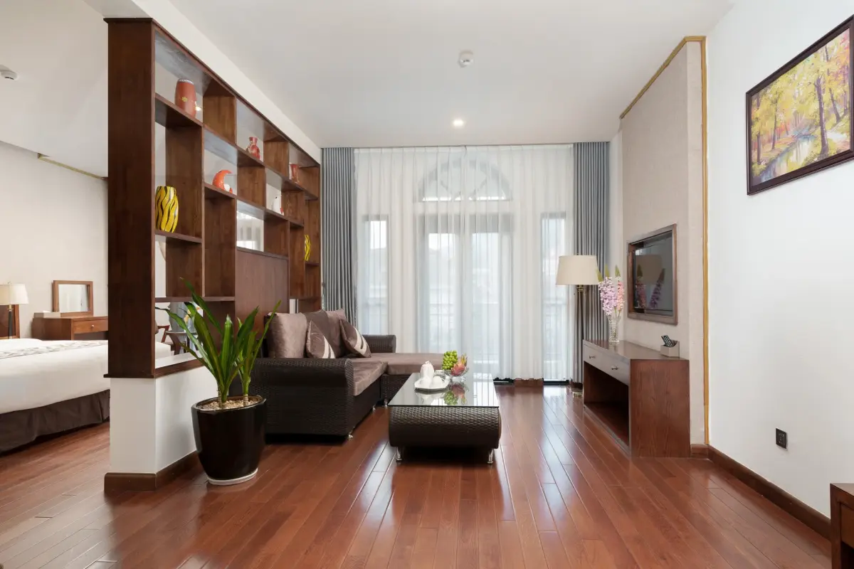 - Trẻ ≥ 12 tuổi hoặc người lớn thứ 3: phụ thu 350.000 VNĐ/đêm (có giường phụ).