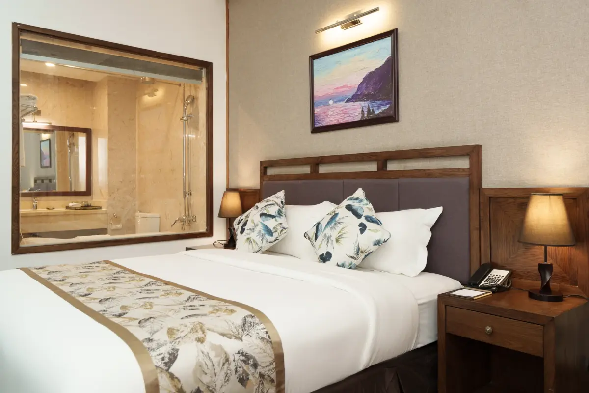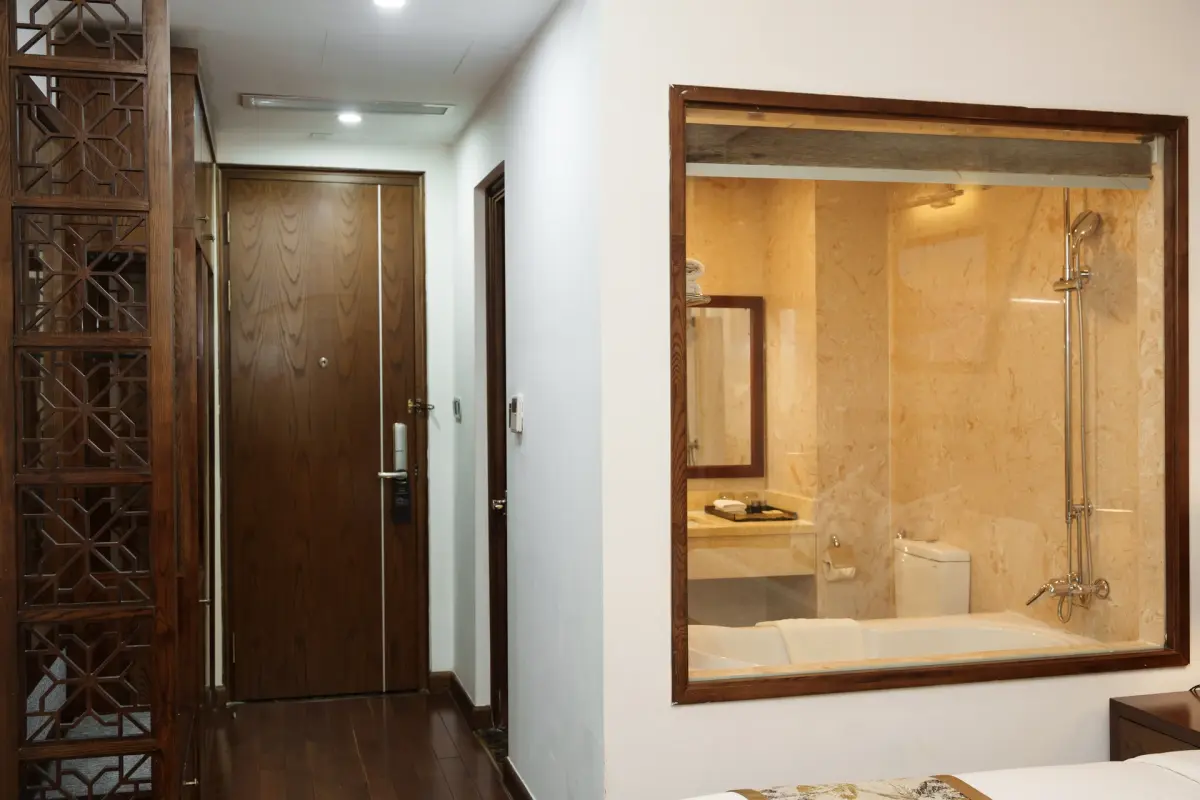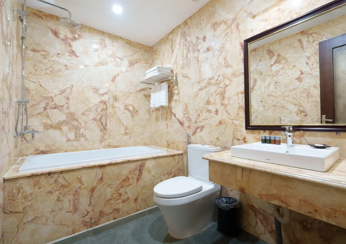 - Phòng tắm riêng với bồn tắm hoặc vòi sen, áo choàng, dép đi trong phòng.