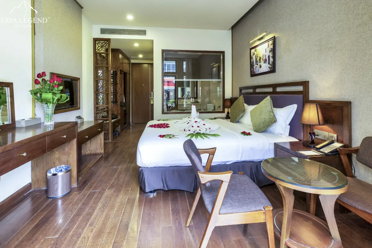 Có. Nhiều phòng hạng Deluxe và Suite có cửa sổ hoặc ban công nhìn thẳng ra hồ Sa Pa và dãy Hoàng Liên Sơn.