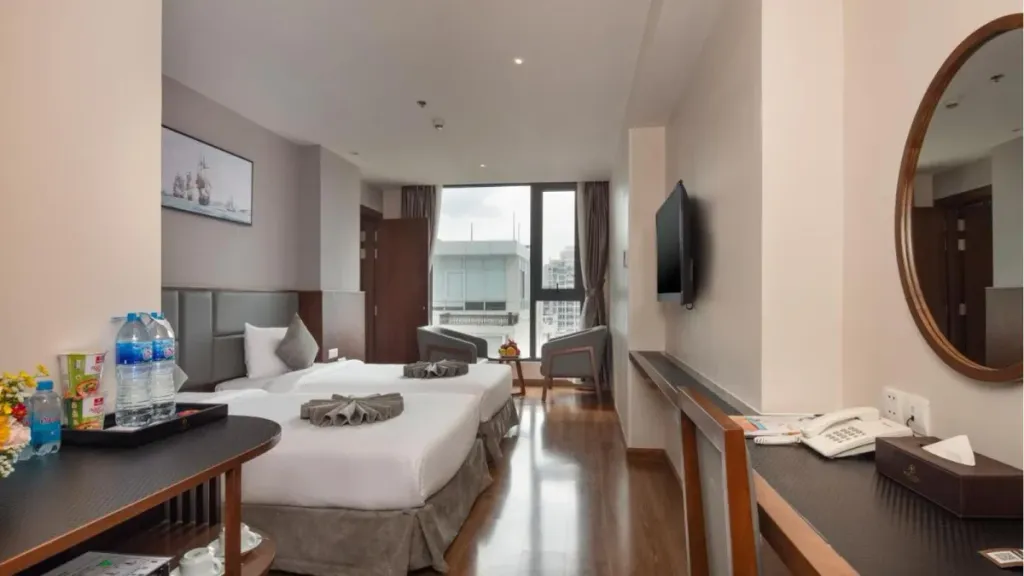 - Superior City View (SCV): Các phòng Superior City View có diện tích 25m², phù hợp cho những du khách thích ngắm nhìn nhịp sống sôi động của thành phố. Phòng được trang bị áo choàng tắm, khăn tắm, wifi miễn phí và bãi đỗ xe.