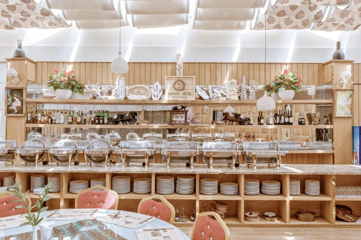 Du Parc có nhà hàng Le Bistro phục vụ món Âu – Á, quầy bar, spa/massage, phòng xông hơi, phòng gym (nhỏ), dịch vụ giặt ủi, và lễ tân 24/7. Bữa sáng buffet phục vụ từ 6:30 – 9:30 sáng, có tính phí riêng khoảng 250.000đ/người lớn.