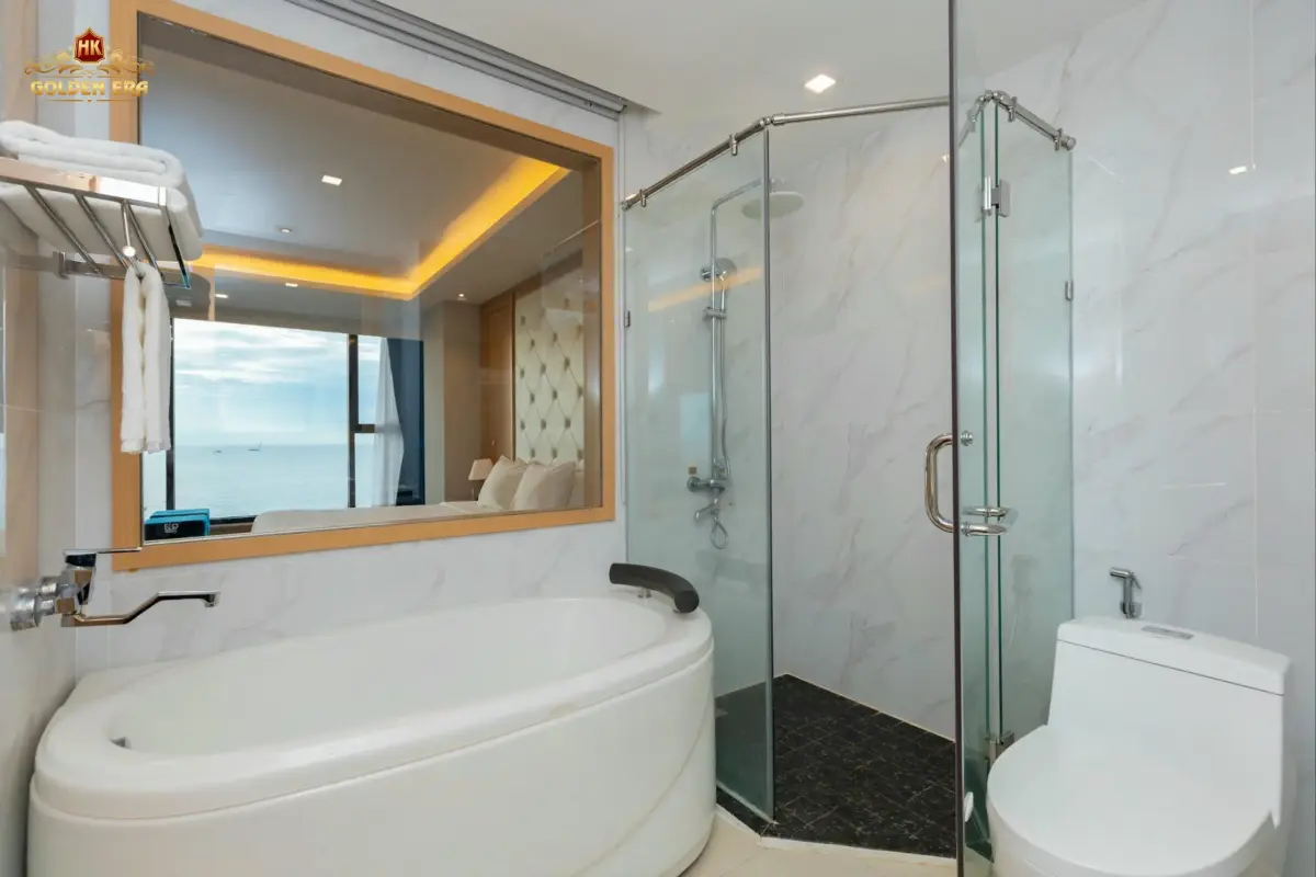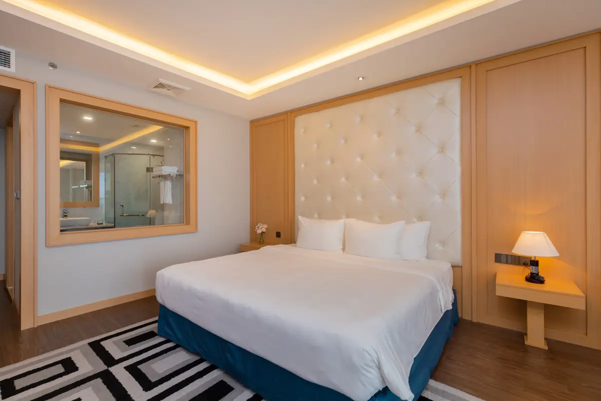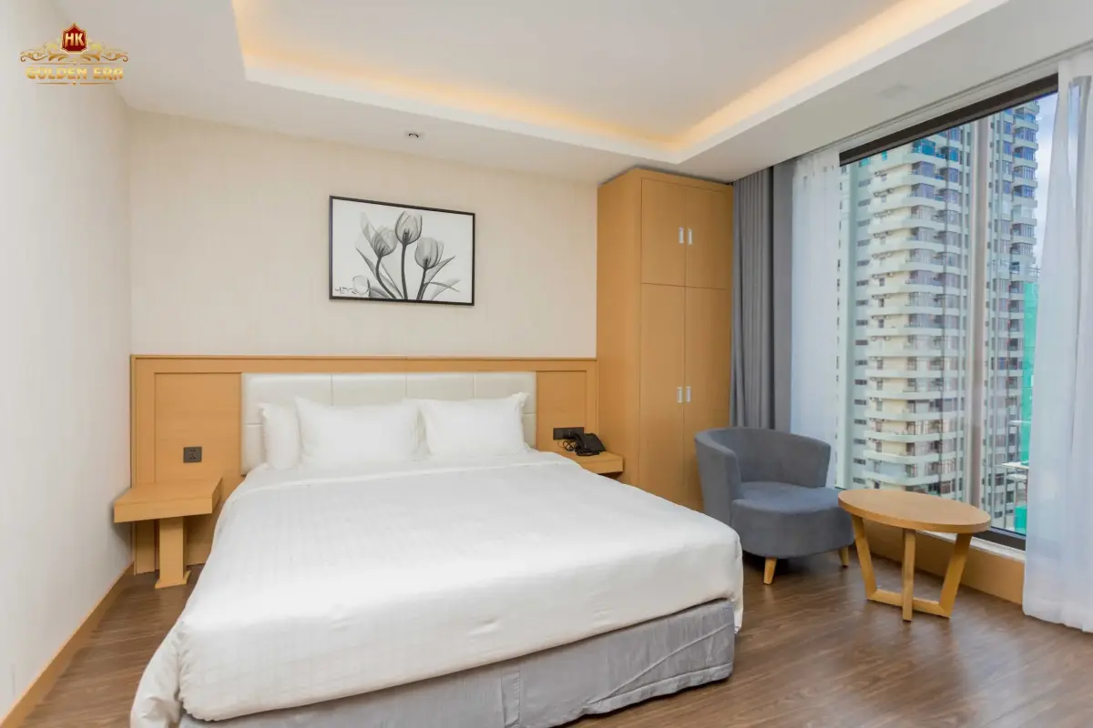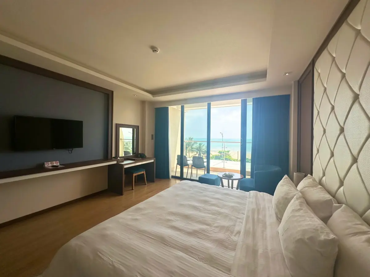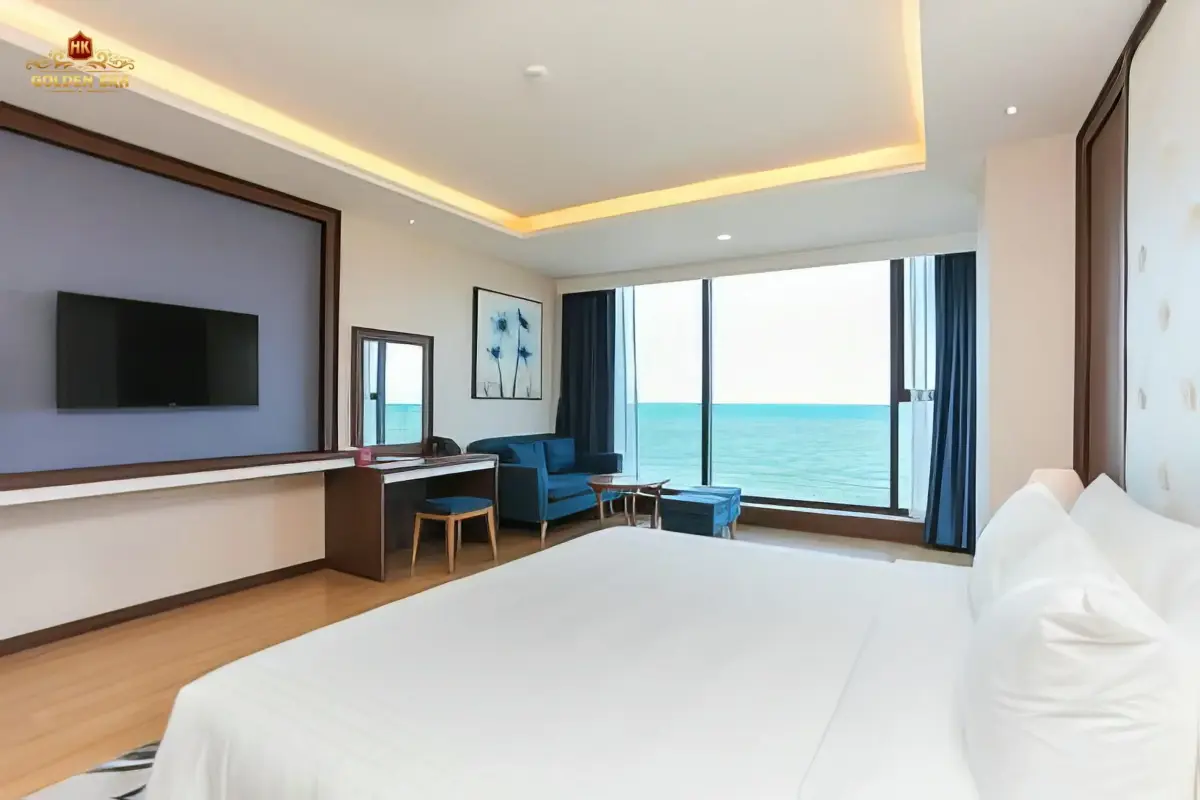 - Phòng nghỉ: Các hạng phòng đa dạng như Deluxe, Premier Ocean View, và Golden Suite đều được trang bị đầy đủ tiện nghi hiện đại (TV màn hình phẳng, minibar, két an toàn). Đặc biệt, nhiều phòng có ban công riêng, mang đến không gian thư giãn lý tưởng để bạn tận hưởng không khí biển.