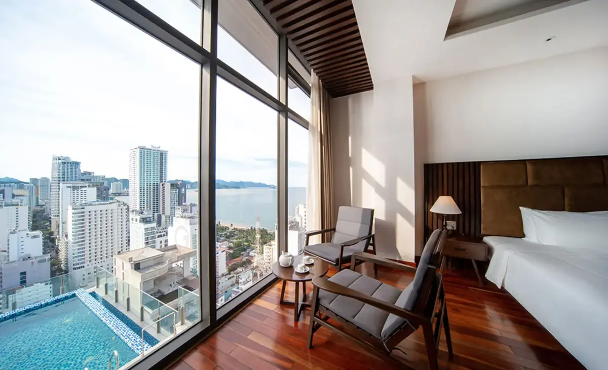 - Hồ Bơi Vô Cực (Infinity Pool): Nằm tại tầng thượng, hồ bơi mang đến tầm nhìn tuyệt đẹp bao quát Vịnh Nha Trang. Khu vực lý tưởng để thư giãn và ngắm hoàng hôn.