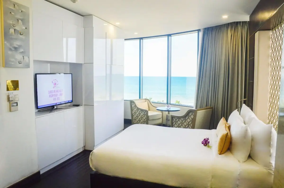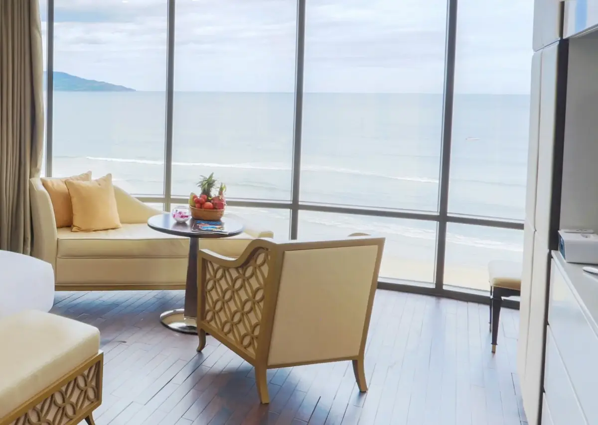 Tất cả các phòng đều được thiết kế để tận dụng tối đa tầm nhìn toàn cảnh ra biển Mỹ Khê.