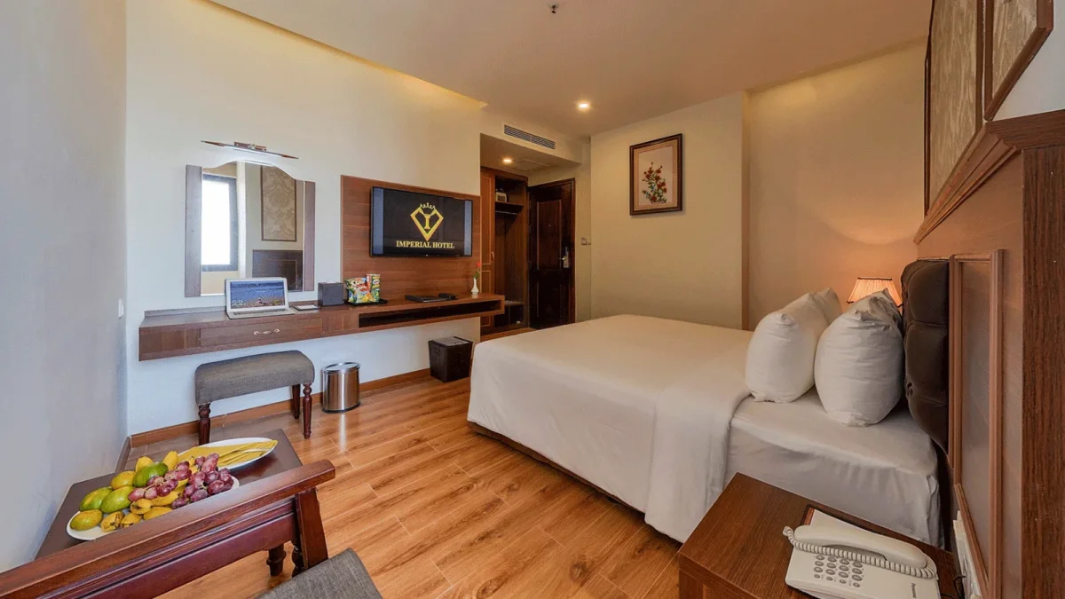 Với lối kiến trúc cổ điển pha chút hiện đại, Imperial Nha Trang không chỉ mang đến sự sang trọng mà còn tạo nên cảm giác ấm cúng. Khách sạn sở hữu 143 phòng nghỉ với các loại phòng đa dạng như Superior, Deluxe và Suite, đáp ứng mọi nhu cầu từ khách đi công tác đến nghỉ dưỡng.