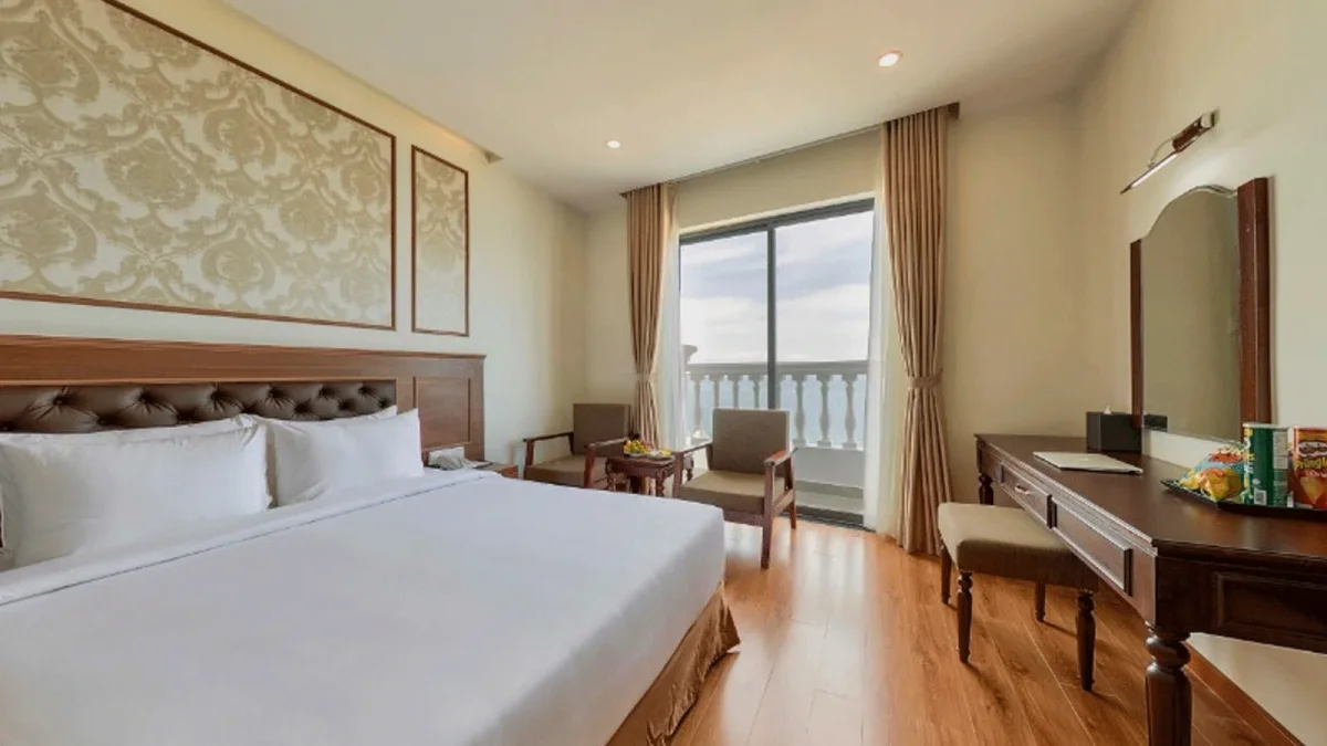 Đặc biệt, nhiều phòng có ban công hoặc cửa sổ lớn hướng biển, mang đến tầm nhìn tuyệt đẹp ra vịnh Nha Trang.