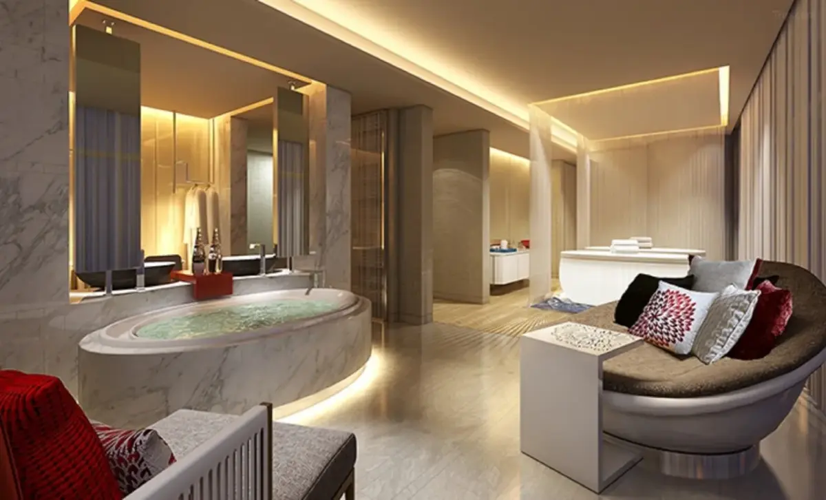 Trang bị đẳng cấp: Tivi màn hình phẳng lớn, bàn làm việc tiện nghi, bồn tắm nằm đá cẩm thạch và bộ đồ dùng nhà tắm cao cấp luôn sẵn sàng phục vụ.