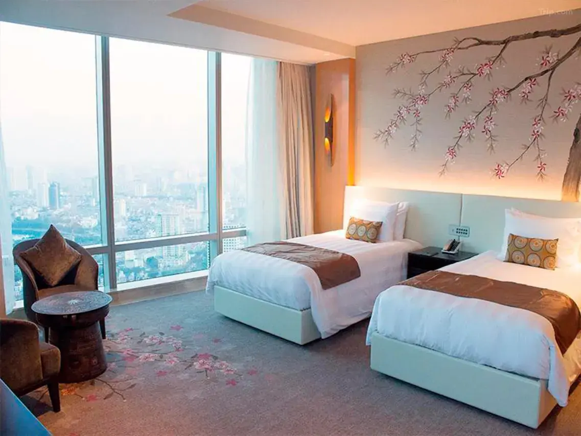 Cửa kính sát trần: Đặc điểm đắt giá nhất là hệ thống kính bao quanh phòng giúp du khách ngắm nhìn Hồ Tây hoặc toàn cảnh thành phố ngay từ giường ngủ.