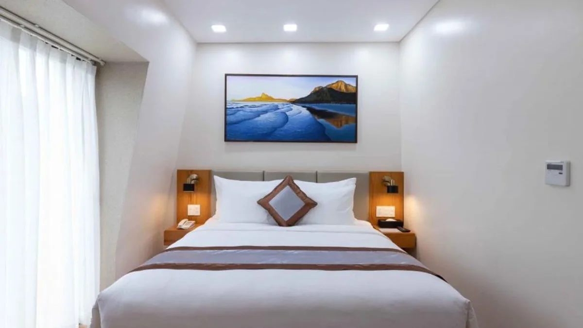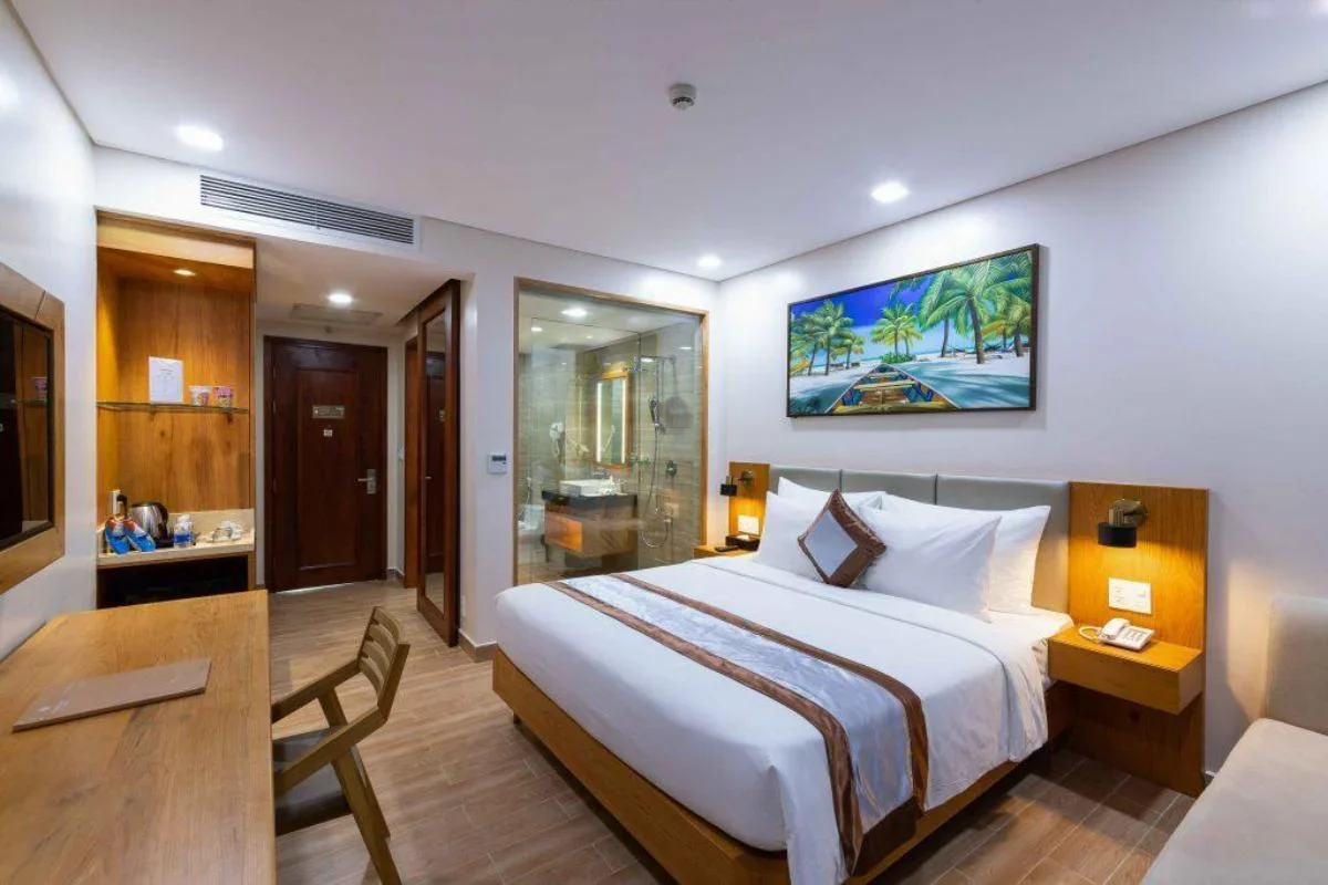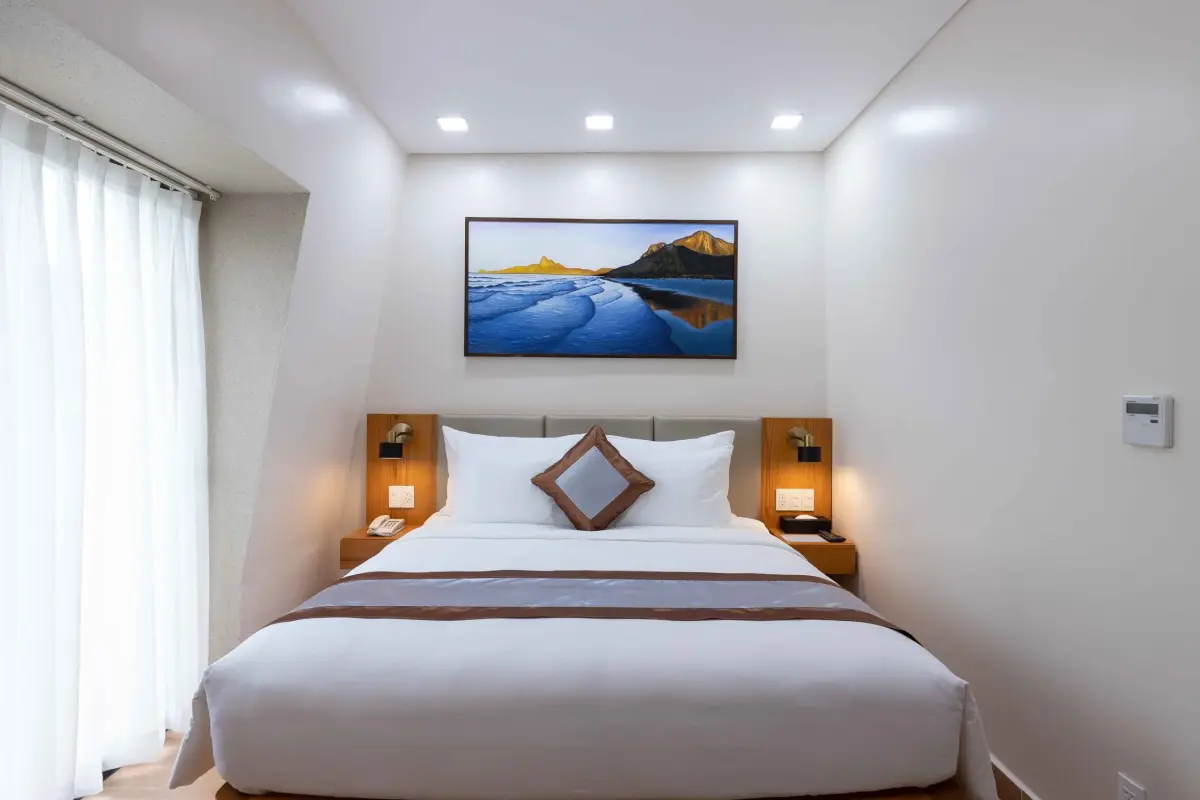 Khách sạn mang phong cách hiện đại, gọn gàng và sáng sủa. Toàn bộ khu nhà được thiết kế với tông trắng chủ đạo, nhiều cửa sổ lớn đón nắng tự nhiên, tạo cảm giác thoáng đãng và dễ chịu. Một vài phòng có ban công nhỏ hướng ra phố hoặc nhìn về phía biển An Hải.