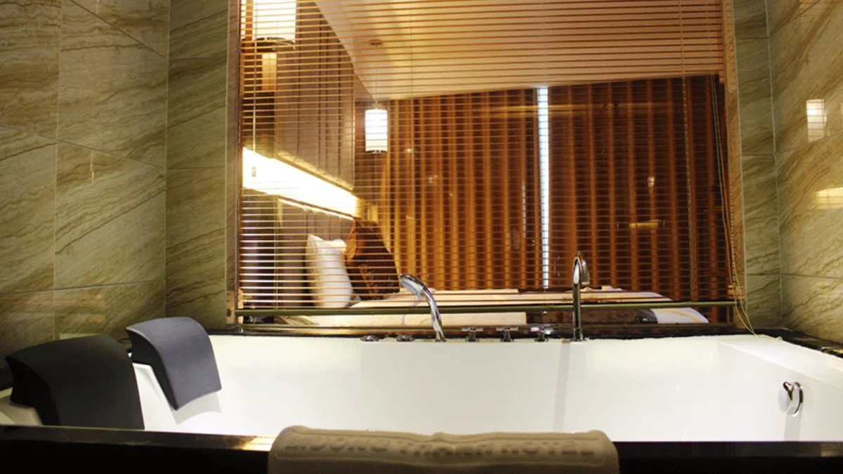 Nếu nhìn từ xa, bạn sẽ thấy kiến trúc khách sạn khá đặc biệt – 2 tòa nhà nối liền nhau tạo thành hình chữ V, được ví như đôi cánh đại bàng. Thiết kế này không chỉ để “cho đẹp” mà còn giúp: