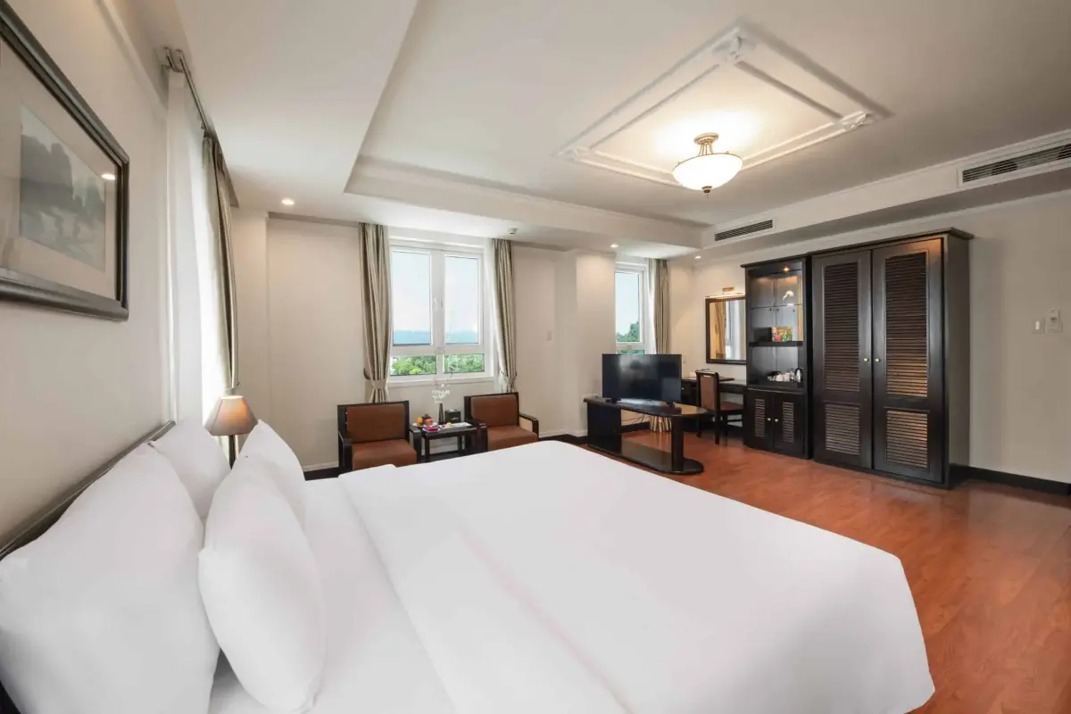 - Tiện nghi đầy đủ: Mỗi phòng đều có bồn tắm nằm riêng biệt, hệ thống điều hòa thông minh, internet tốc độ cao và đầy đủ các vật dụng cá nhân cao cấp.
