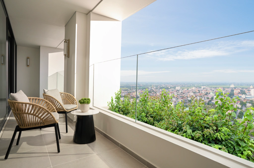 - Không gian lưu trú: Hệ thống phòng nghỉ và các căn hộ cao cấp được thiết kế với không gian mở, tận dụng tối đa ánh sáng tự nhiên và tầm nhìn hướng ra khung cảnh núi non trùng điệp của Ninh Bình. Nội thất được chăm chút tỉ mỉ với các vật liệu cao cấp, mang lại sự thoải mái và đẳng cấp tuyệt đối.