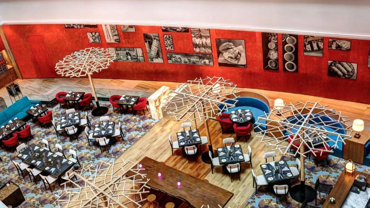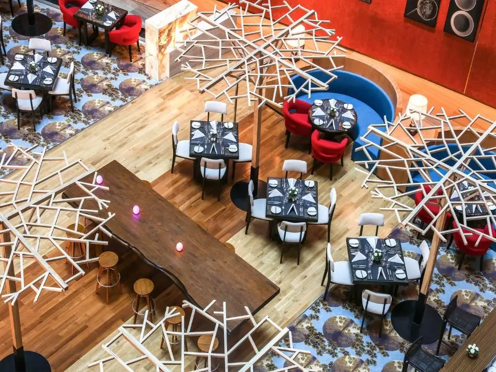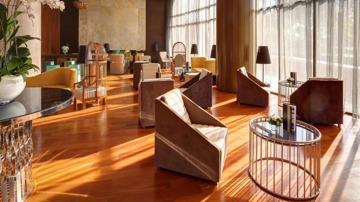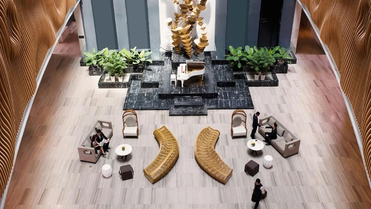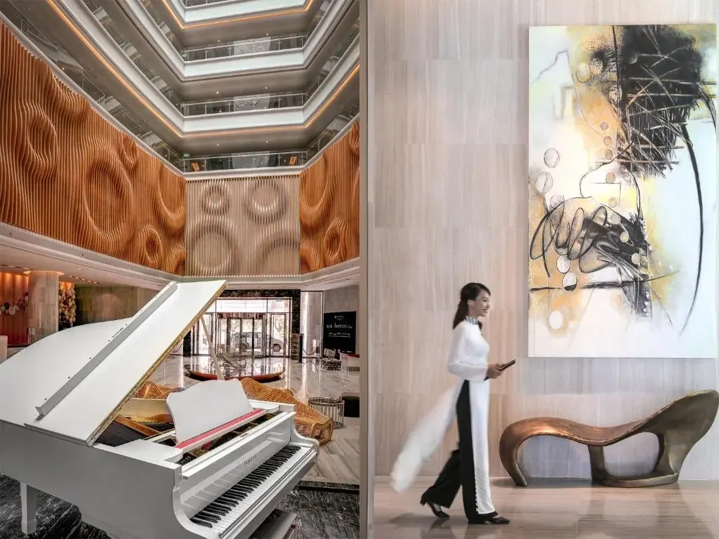 Bước vào sảnh chính của Pullman, bạn ngay lập tức cảm nhận được sự khác biệt. Không gian mở với trần cao, ánh sáng tự nhiên chan hòa và phong cách kiến trúc đương đại tạo nên bầu không khí vừa sang trọng vừa gần gũi.