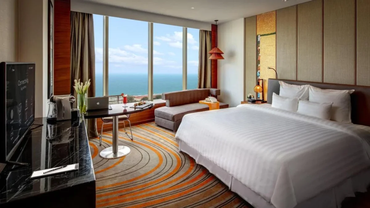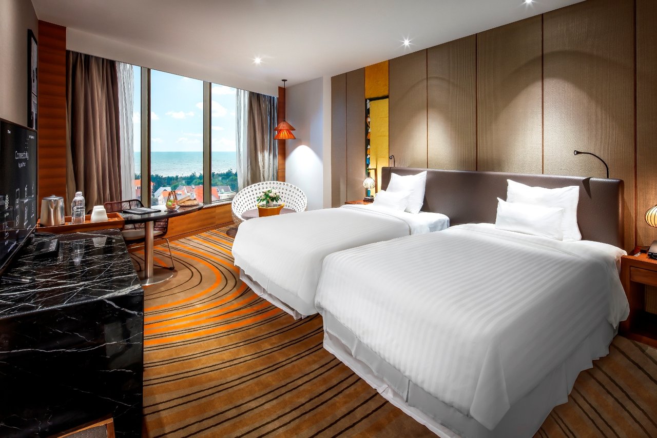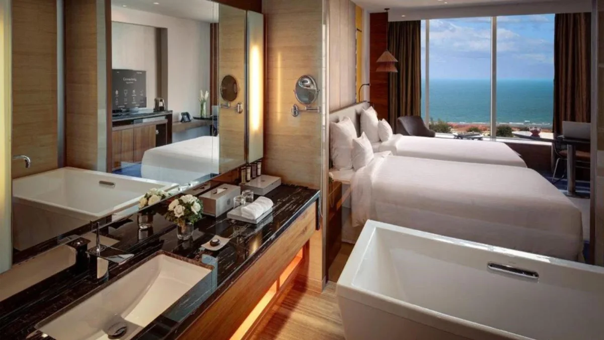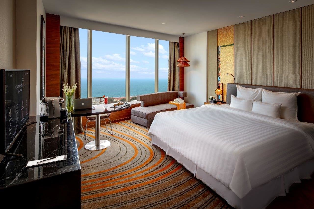 Đặc biệt, các phòng Executive Suite và Presidential Suite mang đến trải nghiệm đẳng cấp hơn với không gian rộng rãi, khu vực tiếp khách riêng biệt và tầm nhìn toàn cảnh biển Vũng Tàu – hoàn hảo cho những dịp kỷ niệm đặc biệt hoặc kỳ nghỉ sang trọng.