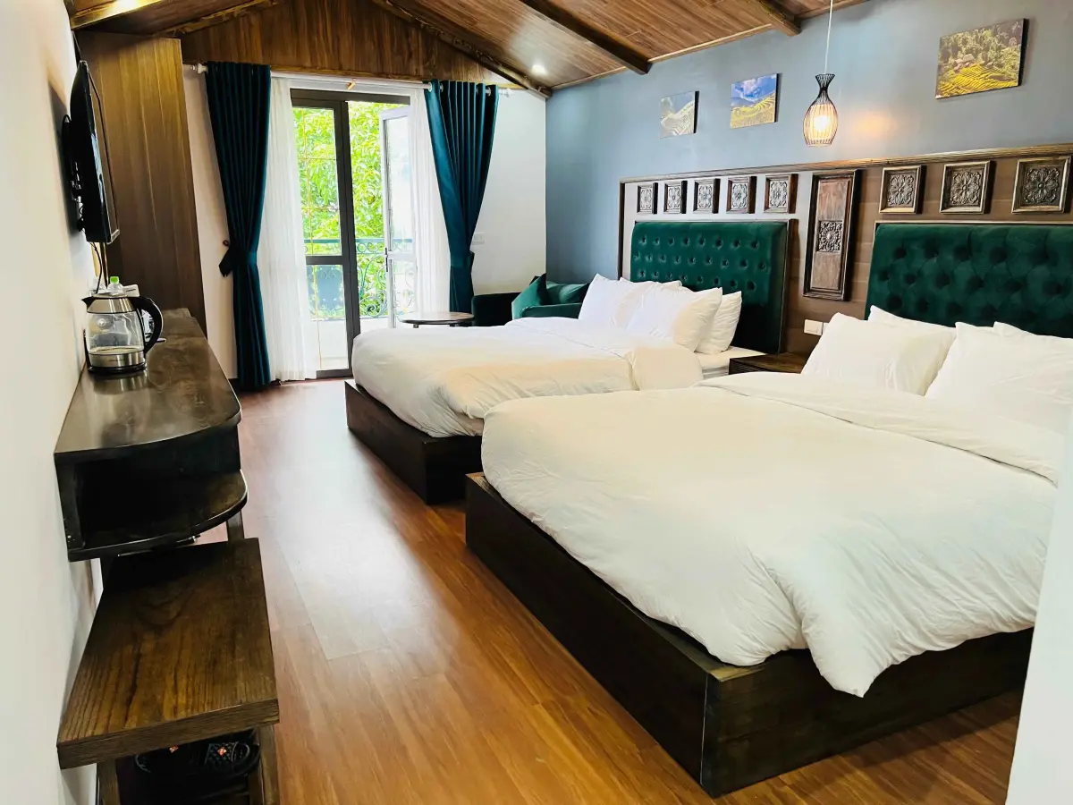 Phòng Deluxe 2 Giường Đôi Có Ban Công Và Bồn Tắm