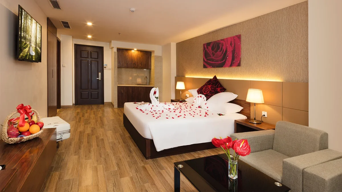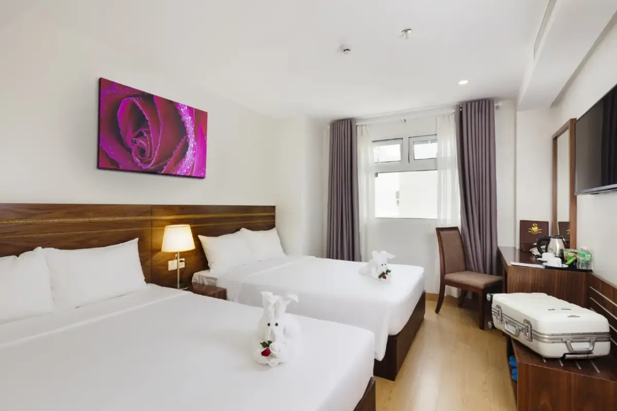 - Kết nối tiện ích: Khách sạn nằm trong khu vực tập trung nhiều nhà hàng, quán cà phê, và các trung tâm mua sắm, giải trí lớn của Nha Trang. Từ đây, việc đi thăm Tháp Trầm Hương hay Chợ Đêm Nha Trang đều rất dễ dàng.