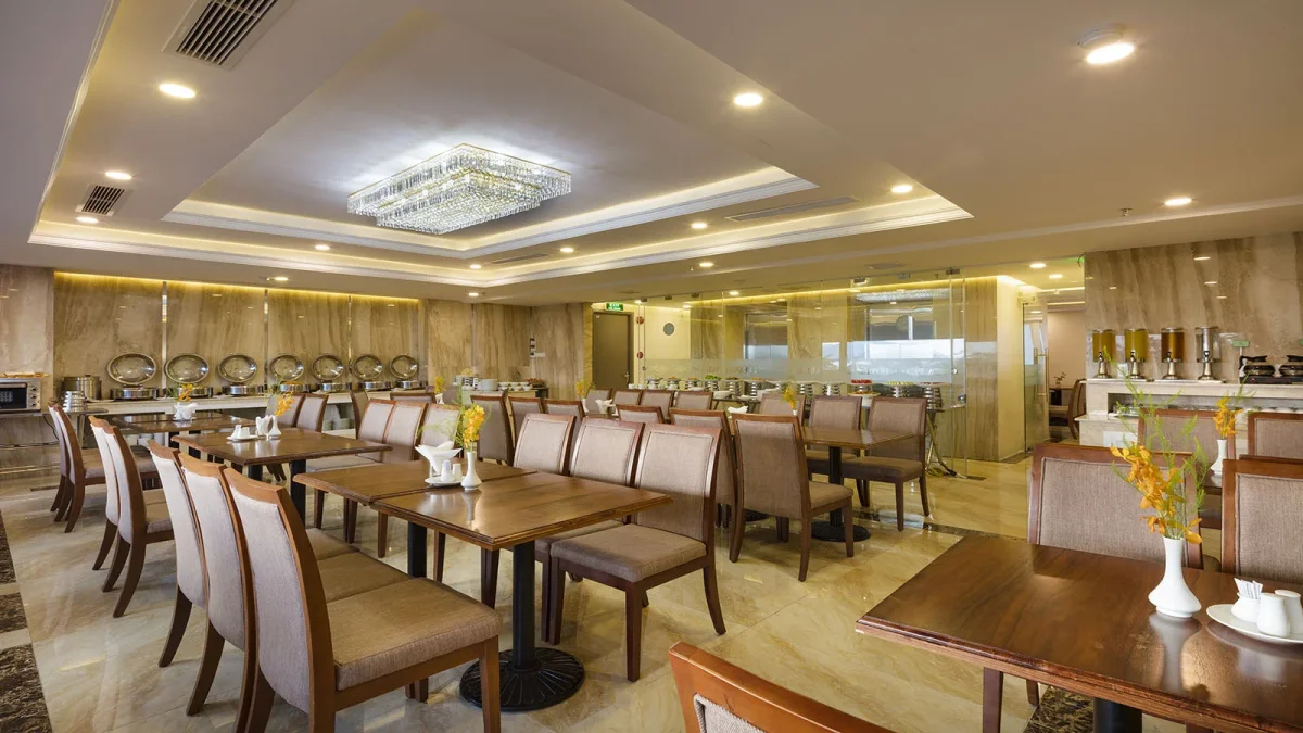 - Nhà hàng và Ẩm thực: Nhà hàng tại khách sạn phục vụ đa dạng các món ăn Á – Âu và đặc sản địa phương tươi ngon, lý tưởng cho bữa sáng Buffet hoặc bữa tối lãng mạn.