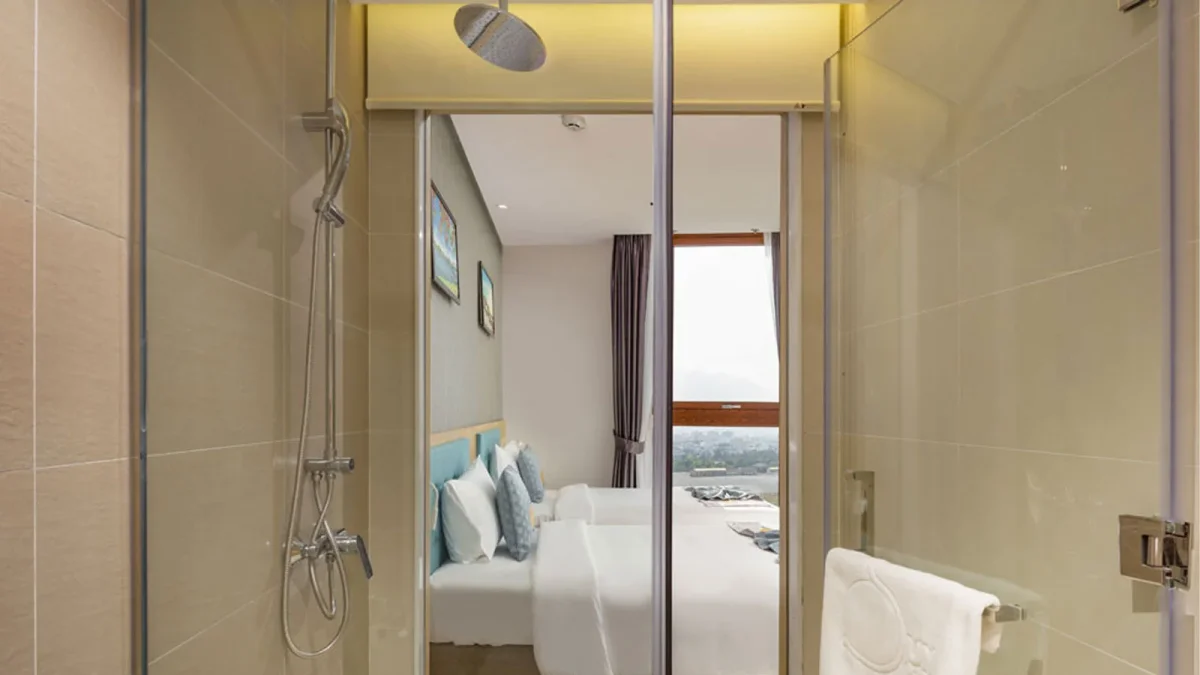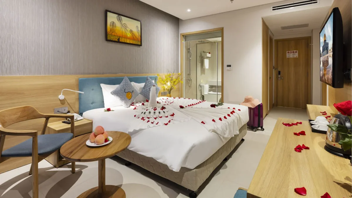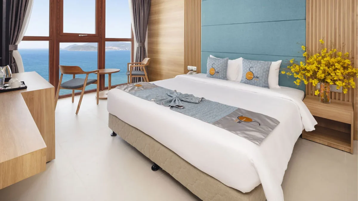 Khách sạn cung cấp 95 phòng nghỉ hiện đại, sang trọng với nhiều loại phòng đa dạng như Deluxe City View, Senior Deluxe Sea View, Premier Deluxe Sea View và Suite Sun Kiss Sea View. Mỗi phòng đều được trang bị Wi-Fi miễn phí, truyền hình cáp, minibar, két an toàn và điều hòa nhiệt độ, đảm bảo mang đến sự thoải mái tối đa cho du khách.