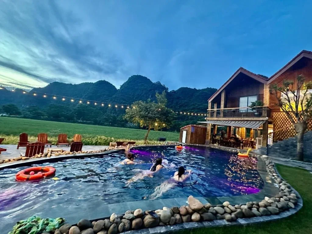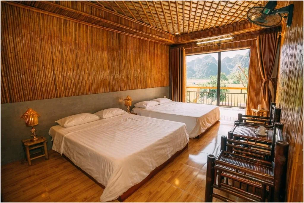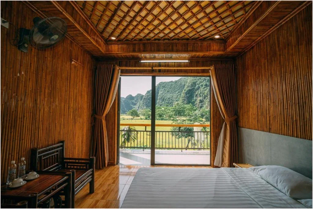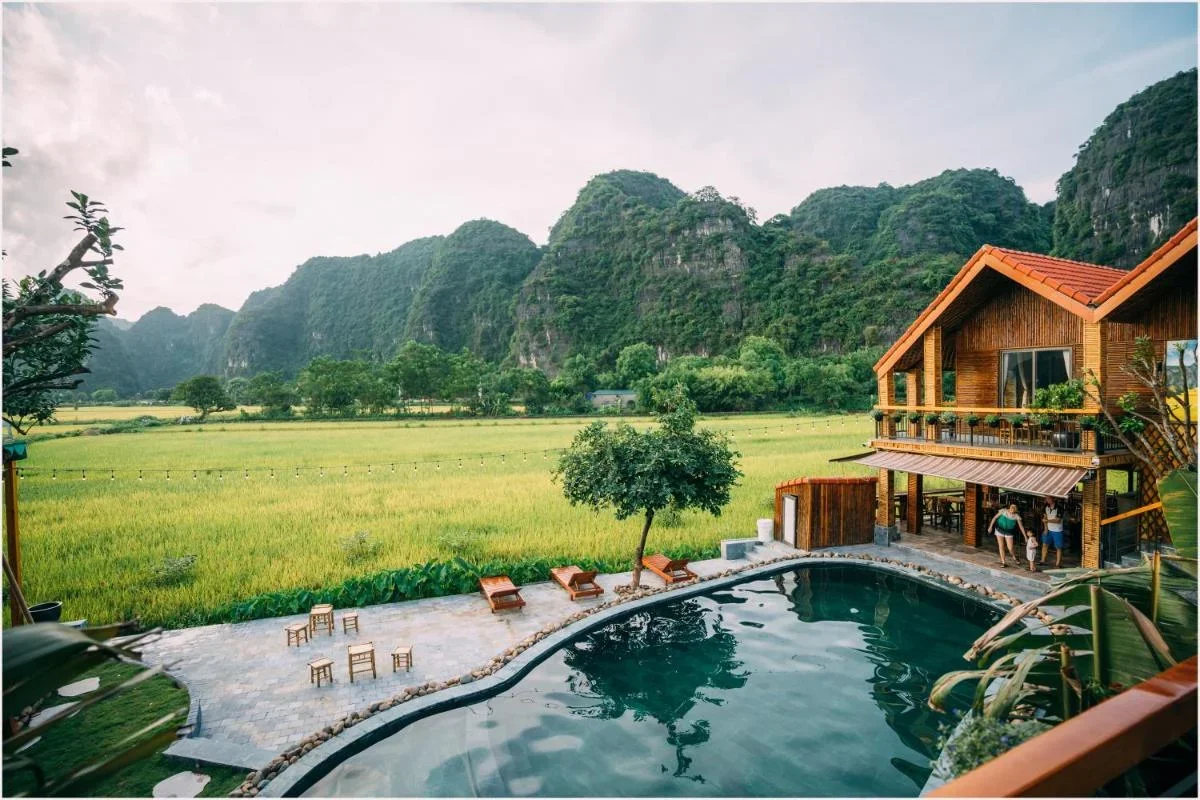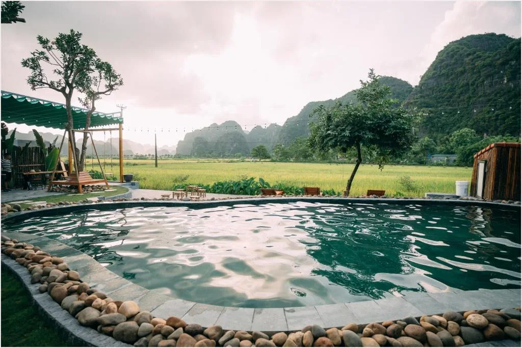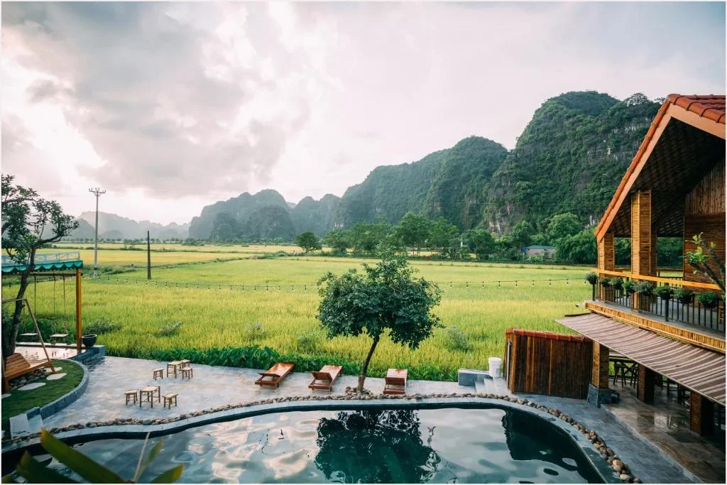 Nằm giữa cánh đồng lúa bát ngát và núi đá vôi hùng vĩ của Tam Cốc, Windy Fields là một trong những nơi nghỉ dưỡng được yêu thích nhất khi du khách muốn trải nghiệm không gian yên bình, gần gũi thiên nhiên ở Ninh Bình.