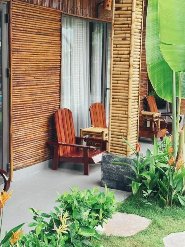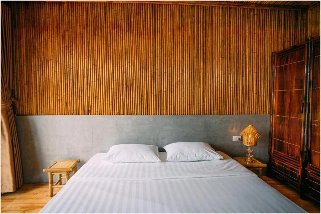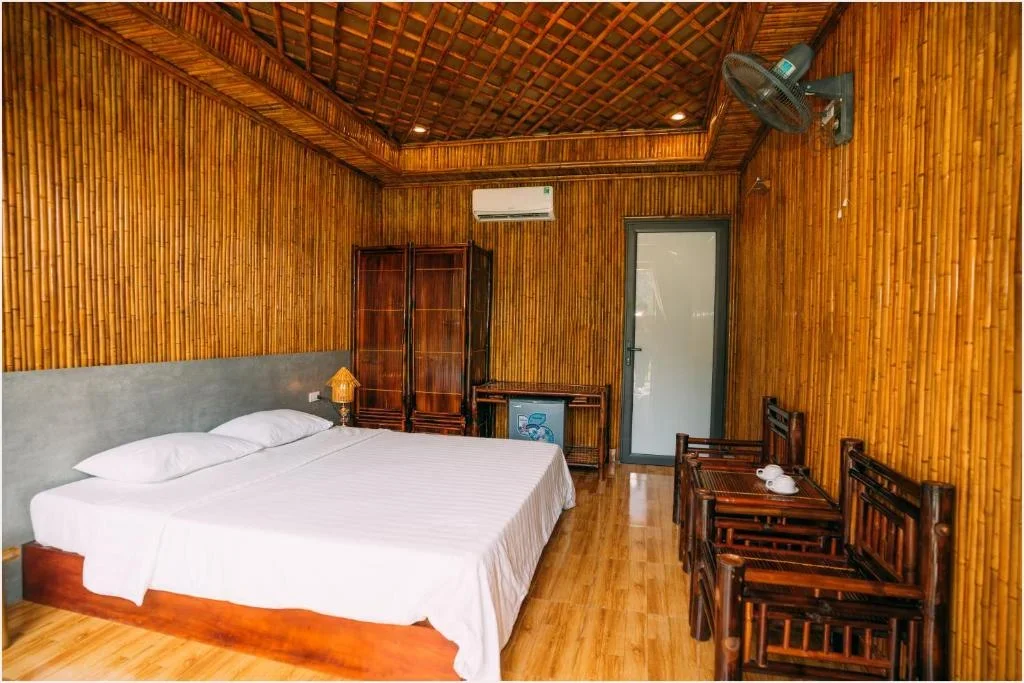 Windy Fields được thiết kế theo phong cách mộc mạc với những căn nhà làm từ tre khô, tạo ấn tượng mạnh mẽ với du khách yêu thích nét truyền thống. Kiến trúc này không chỉ mang lại vẻ đẹp độc đáo mà còn giúp không gian thoáng mát tự nhiên.