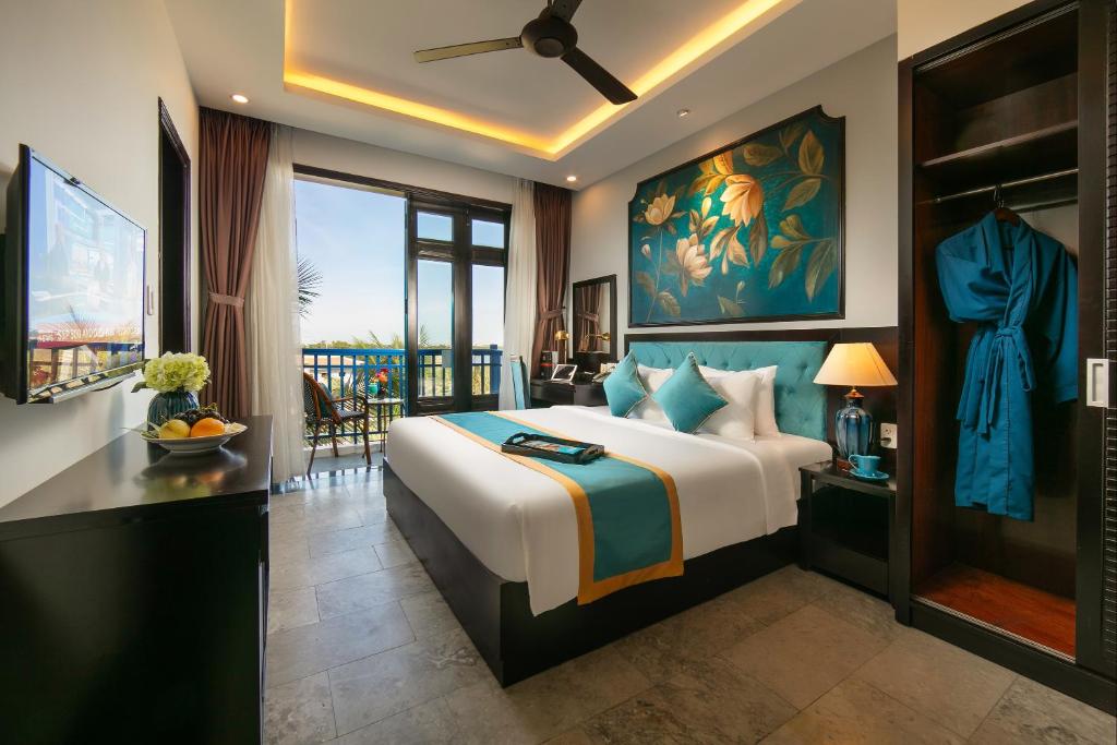 Mỗi căn phòng tại đây đều được tối ưu hóa để đón ánh sáng tự nhiên và gió mát từ dòng sông thổi vào. Ban công rộng rãi là nơi tuyệt vời để bạn ngồi thưởng thức một tách trà vào buổi sớm mai, lắng nghe âm thanh dịu dàng của nhịp sống Hội An.