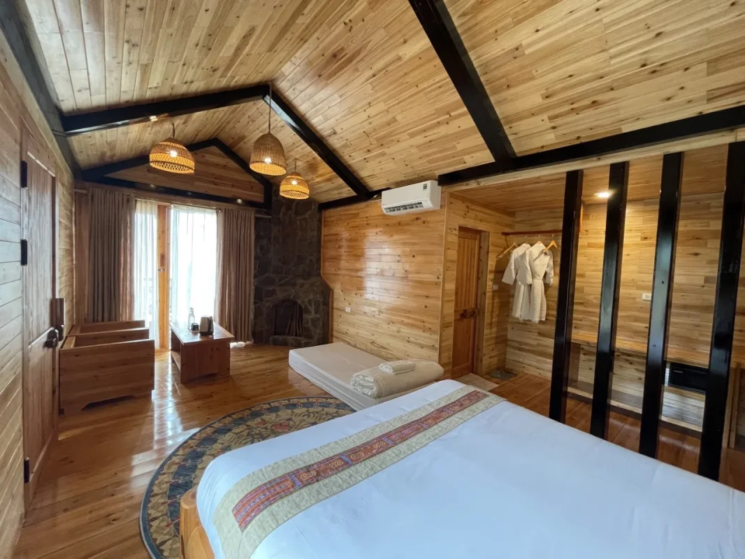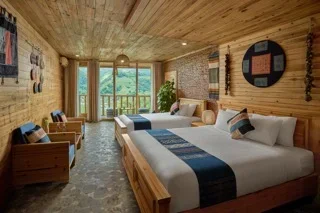 - Deluxe King/Twin với diện tích từ khoảng 40–60 m², ban công nhìn ra cánh đồng lúa/núi.