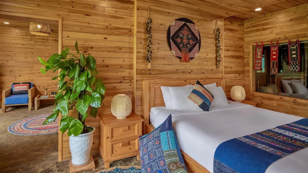 Khu nghỉ dưỡng giới thiệu các bungalow và phòng nghỉ được thiết kế theo phong cách dân tộc H’Mông, Dao với vật liệu tự nhiên và cách bài trí trang nhã. Tất cả các phòng nghỉ đều có ban công hoặc lối ra ngoài nhìn thẳng ra ruộng bậc thang hoặc thung lũng – giúp du khách mỗi sáng thức dậy đón ánh bình minh và ngắm thung lũng từ chính phòng mình.