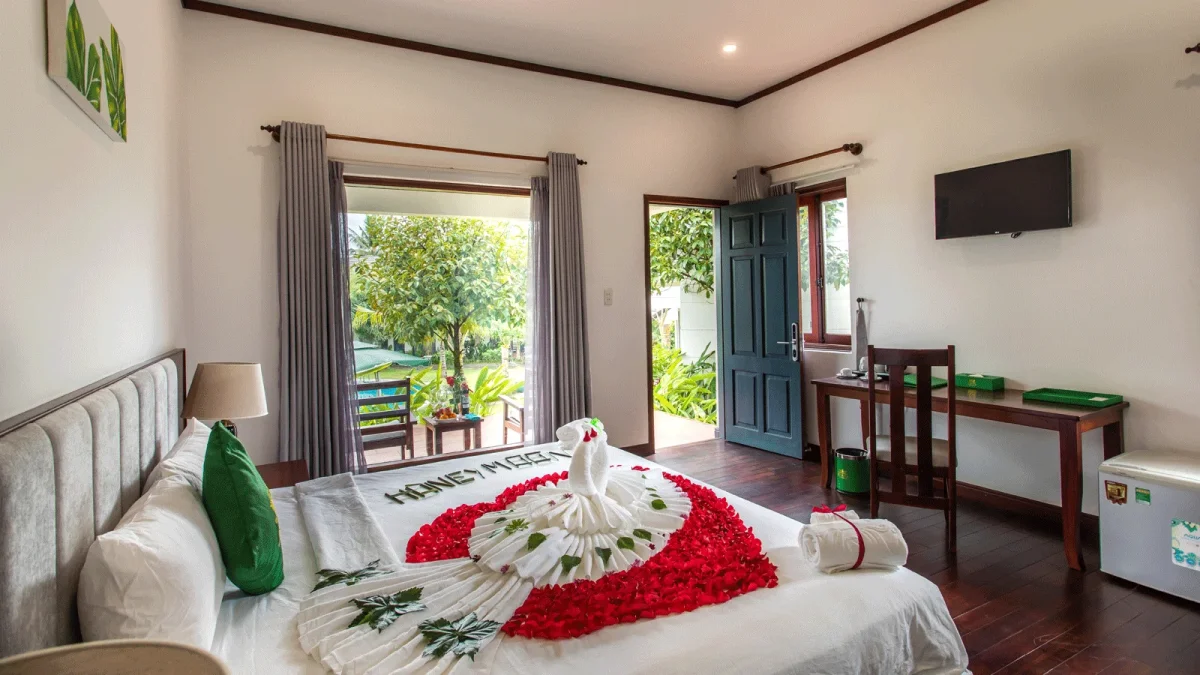 - Bungalow Deluxe: Phù hợp cho các cặp đôi, với không gian riêng tư và view hướng vườn.
