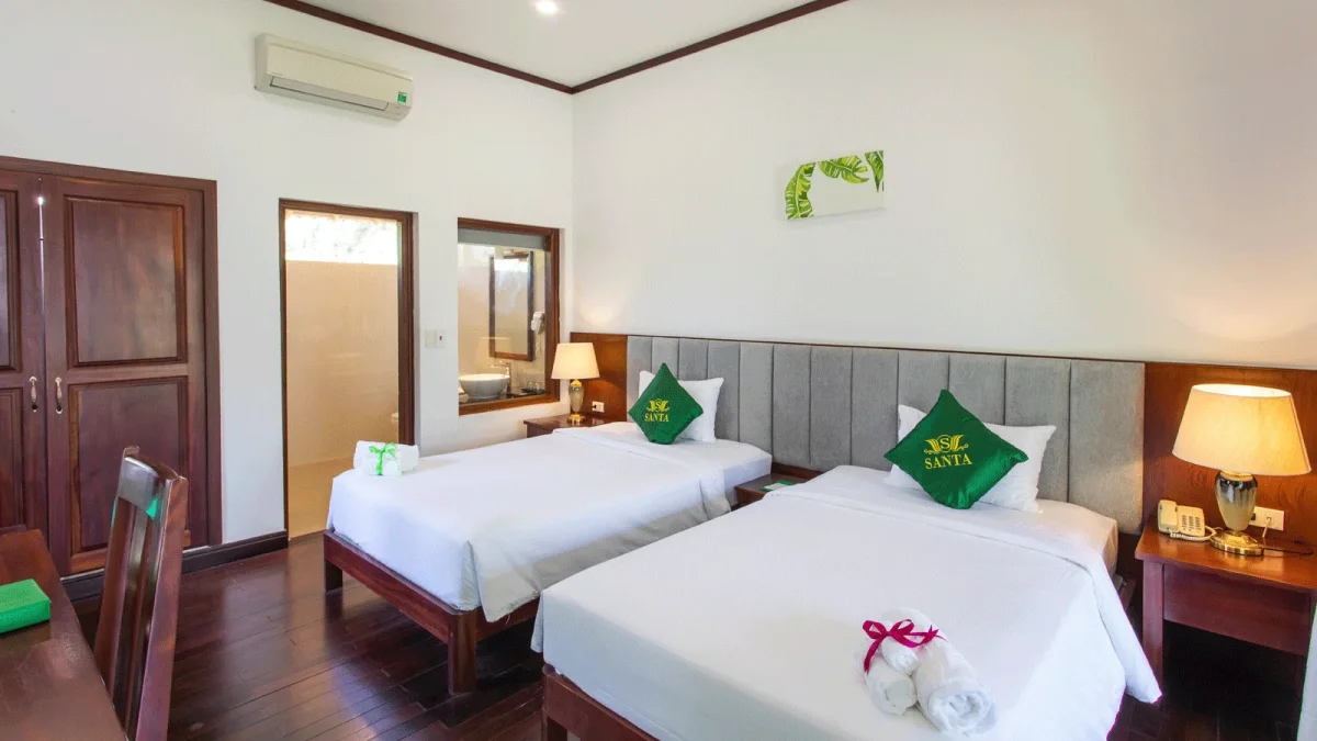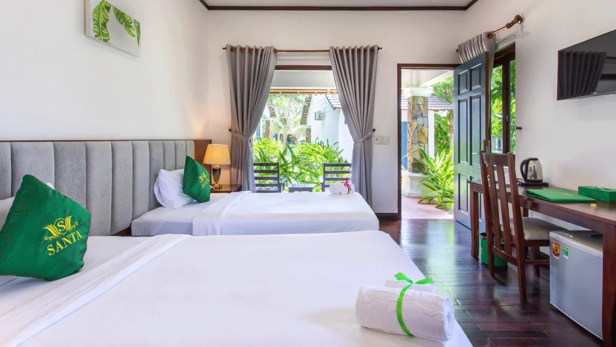 Phú Quốc, hòn đảo ngọc của Việt Nam, luôn là điểm đến yêu thích của du khách nhờ vào cảnh sắc thiên nhiên tươi đẹp, những bãi biển trải dài và không khí trong lành. Santa Garden Resort Phú Quốc là một trong những khu nghỉ dưỡng mang đến trải nghiệm đẳng cấp nhưng vẫn rất gần gũi với thiên nhiên, nơi lý tưởng để bạn tận hưởng kỳ nghỉ trọn vẹn.