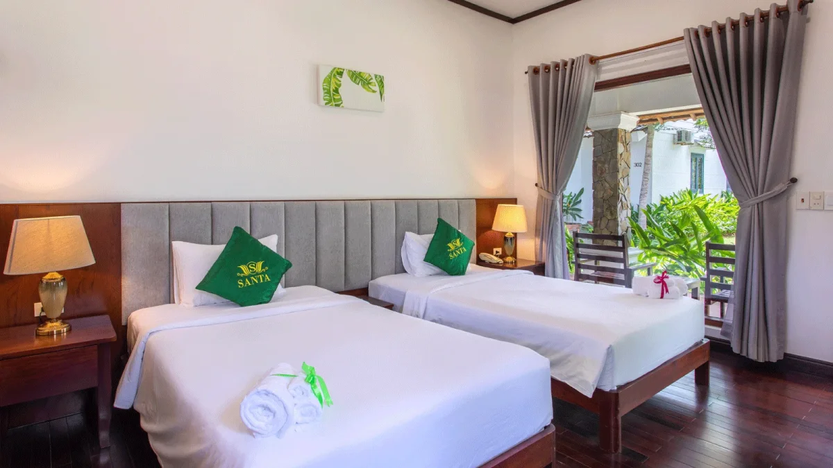 Santa Garden Resort không chỉ là nơi lưu trú mà còn là một điểm đến để bạn tận hưởng những khoảnh khắc đáng nhớ. Đội ngũ nhân viên nhiệt tình, chu đáo luôn sẵn sàng đáp ứng mọi nhu cầu của bạn, từ các hoạt động vui chơi đến thư giãn. Bên cạnh đó, không gian yên bình và gần gũi với thiên nhiên sẽ giúp bạn thực sự “sạc lại năng lượng” sau những ngày làm việc căng thẳng.