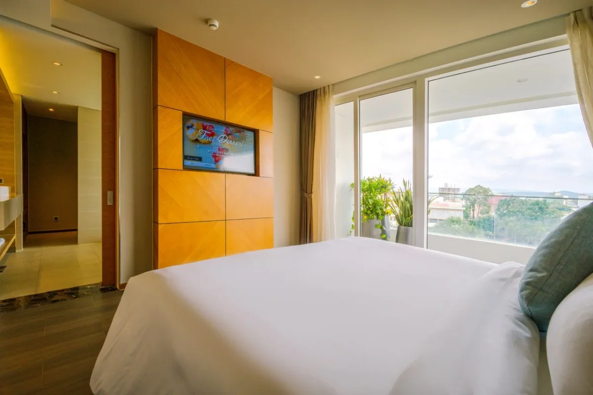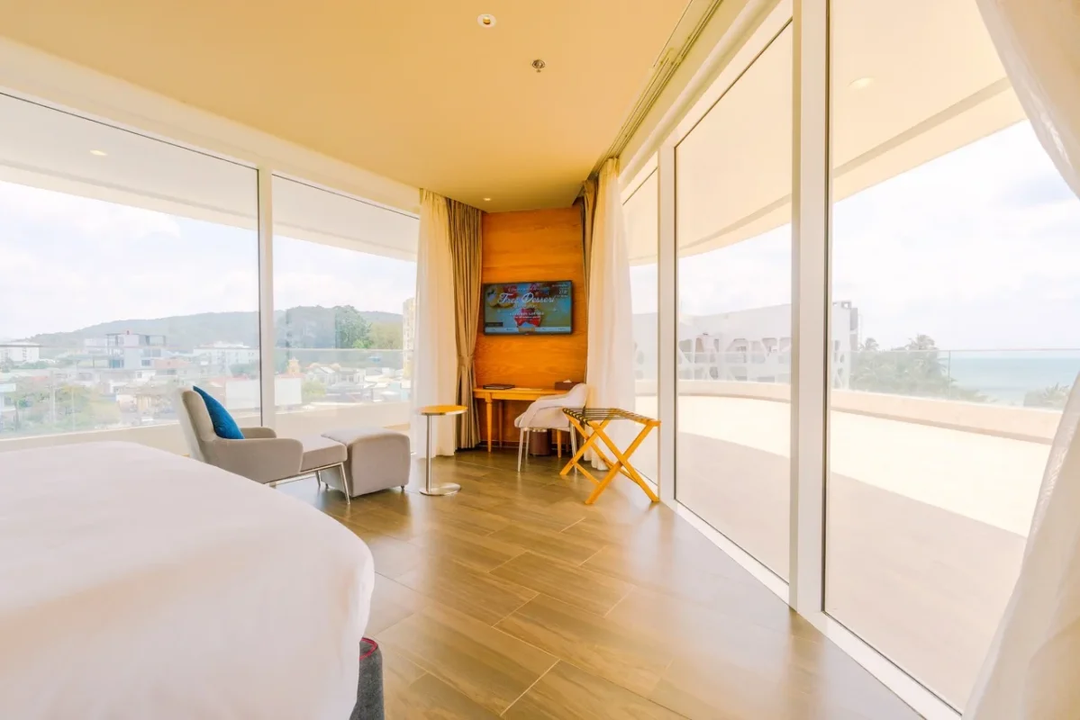 descriptionTận hưởng sự thoải mái tại hạng phòng Junior Suite Ocean View Room, được thiết kế tinh tế rộng 40m2, sở hữu hướng nhìn đẹp thoáng đãng. Phòng được bố trí . Tiêu chuẩn cho 2 người lớn và 1 trẻ em. Sức chứa tối đa: 3 khách. Chính sách trẻ em và phụ thu sẽ áp dụng theo quy định cụ thể của khách sạn (Vui lòng xem chi tiết khi đặt phòng).