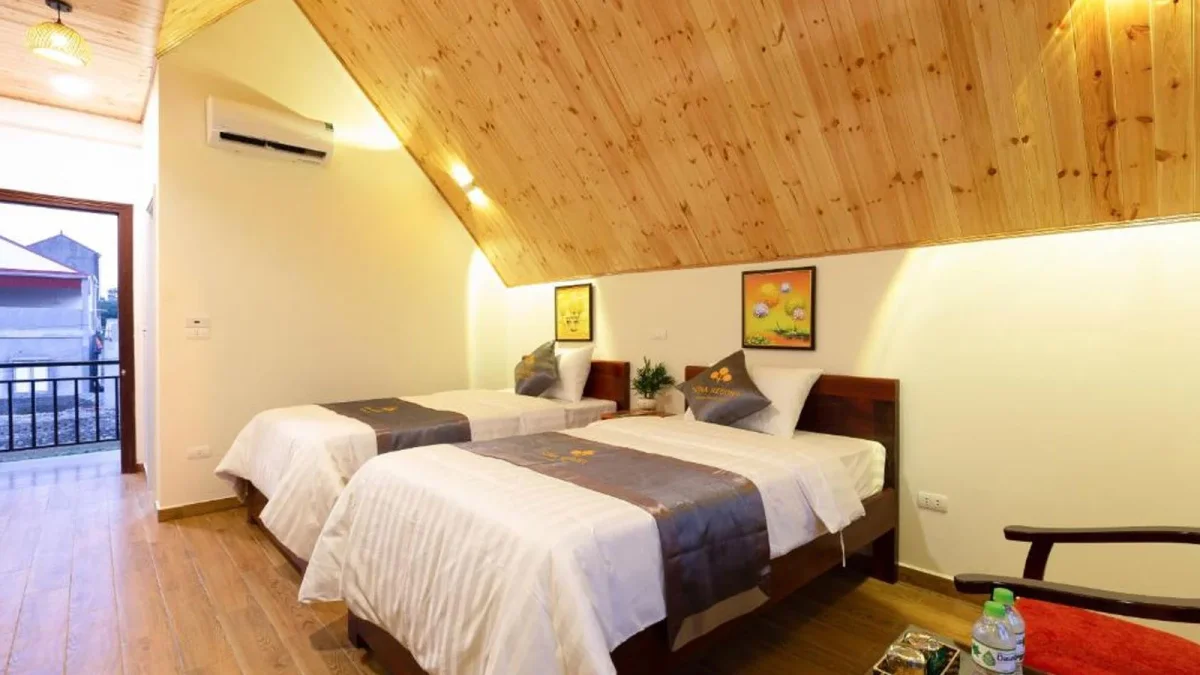 Sona resort ninh bình mang đến trải nghiệm nghỉ dưỡng thanh bình với thiết kế gần gũi thiên nhiên, bao quanh bởi núi non hùng vĩ và mặt hồ lớn. khu resort có nhiều loại phòng từ superior twin đến deluxe family, phù hợp với mọi đối tượng khách. với các tiện ích như hồ bơi ngoài trời, nhà hàng, quầy bar, spa, và khu vực tiệc bbq, sona resort đáp ứng đầy đủ nhu cầu nghỉ dưỡng. vị trí thuận tiện giúp du khách dễ dàng di chuyển đến các địa điểm nổi tiếng như tam cốc, cố đô hoa lư và chùa bái đính.