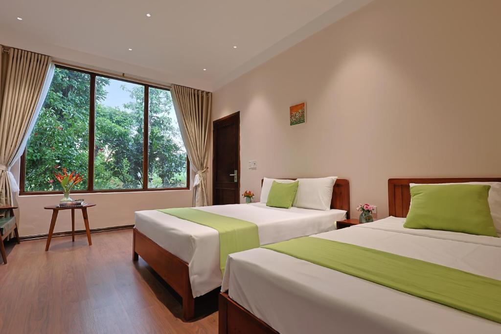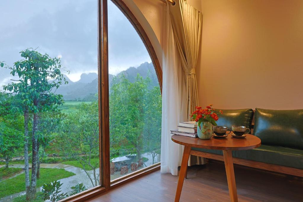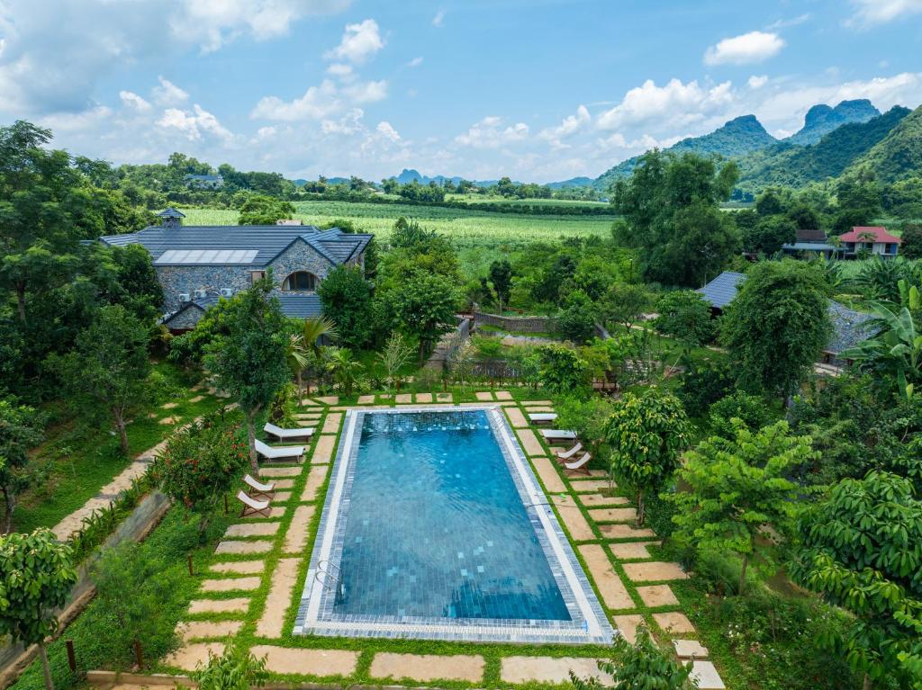 Sundara Retreat trải rộng trên 10.000m² đất, được bao bọc bởi vườn cây xanh mướt, hoa trái ngát hương bốn mùa và dòng suối róc rách bên tai. Nằm cách trung tâm phường Hòa Bình khoảng 1 giờ lái xe, khu nghỉ dưỡng này như một “ốc đảo” giữa núi rừng Tây Bắc, nơi bạn có thể thức dậy với bình minh rực rỡ trên ruộng bậc thang hoặc ngắm hoàng hôn vàng óng bên hồ bơi. Không gian được thiết kế theo phong cách thiền định, nhấn mạnh vào sự bền vững: từ việc trồng cây ăn quả hữu cơ đến hỗ trợ cộng đồng địa phương như xây lớp học tiếng Anh cho trẻ em và phát triển nông sản. Đây không chỉ là nơi nghỉ dưỡng, mà còn là cơ hội để du khách kết nối với văn hóa dân tộc Tày, Mường qua những bữa ăn “từ vườn lên bàn” – tươi ngon và thân thiện với môi trường.