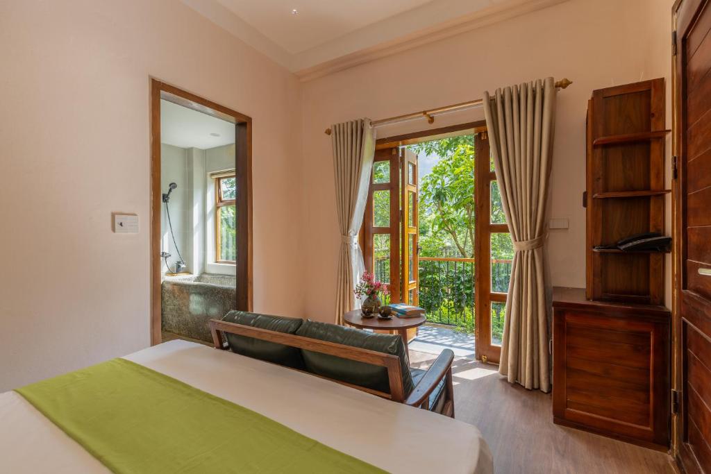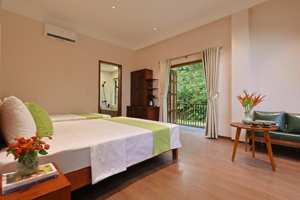 Sundara Retreat mang đến sự kết hợp hoàn hảo giữa tiện nghi hiện đại và hơi thở thiên nhiên. Các phòng nghỉ được trang bị điều hòa, Wi-Fi miễn phí, ban công nhìn ra núi non hoặc vườn cây, cùng phòng tắm riêng với vòi sen và bồn tắm sang trọng. Hồ bơi ngoài trời là điểm nhấn, nơi bạn có thể thư giãn dưới nắng mai hoặc ngâm mình vào buổi tối se lạnh. Khuôn viên còn có sân hiên rộng lớn, khu vui chơi cho trẻ em, và dịch vụ xe đưa đón sân bay – tất cả đều được thiết kế không hút thuốc, thân thiện với gia đình và du lịch solo.